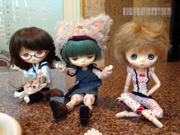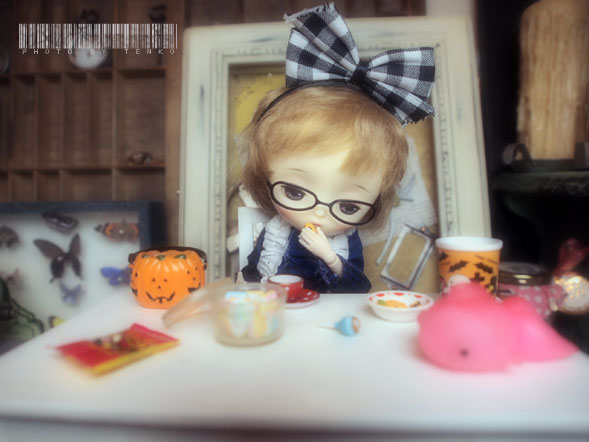 私を陥れる会合が開かれていた!!! そしてその会合でまんまと背中をドドーンと押され 私は、Jerry BerryさんのSLEEPY PENNY basic ver.をその晩、ポチたのであった。 ↓思い切り背中を押してくれた方々 画像左二人は林檎家、右はCOCO家の子JerryBerryたち。 ずっとお迎えしたかったんだけど、去年の冬のリミテっこが めちゃんこかわいくて、それと同じようなリミテが出たら お迎えする!! ってな事を思ってたんだけど、↑の新宿の会合で ベーシックでも充分にかわいいという事がわかったので (それと最大のネックはオビツボディ。今まで ブライスのボディにしたりと遊んだ事はあったんだけど、 オビツボディって旧タイプは、もう、ヘロヘロ。 腰は抜けるし首は折れるし。。だった。 しかし、今回、触らせてもらってオビツボディ! しっかりしてたぁ〜。しかも自立もできる) (それともう、我慢の限界でもあった(笑)) ベーシックのPennyを手始めにお迎え。 次は、ツボなリミテっこのBerryでも出たら…… などと野望を考えつつ、2週間待つ(納期が2週間) で、その間に、秋のリミテっこが出て! まさかの1周年子。お顔はかわいいものの セット内容がちょいと好みからハズれてたのでまた 次のリミテっこを待つことにした。 で、9月からベーシック子の納期が2週間から3〜4週間に 伸びて、8月末にポチた私は 「(≧ω≦*) イヤン♪ ちょうど良い時期だったじゃぁん」 ε-(´▽`) ホッと胸をなでおろす。 でもって、昨日チラとハロウィンのお菓子をむさぼる姿を アップしましたが、本日は枚数多めで いきまするぅ〜〜〜!! 夕べ、お菓子を食べた後、長旅もあって疲れた模様。 それでも、ミギオに乗って、ミハギさんに叱られないかと ┣¨キ(*゚д゚*)┣¨キしたり めちゃんこデカイ態度でくつろいだりしました(笑) そして、今日、朝目覚めると 低血圧らしく。。。 もう、ヘアもクサクサで(笑) 学校へ行く用意を一応はしたものの すぐに疲れて 学校は来週からにする………(-.-)ボソッ… と、一言。 また、クッキーを食べ始め(笑) お着替えなどをして (しかし、どんだけお菓子、好きなん??(笑)) ミディブライスのOFなどを着てみたり ボーイッシュに決めてみたり てな具合で遊びました。 今までうちには居ないタイプの子?? ってなホワワワ〜〜んとした子で♪ (//艸//) …ムフ♪ カワイイ—゚.+:。ヾ(≧▽≦)ノ゙☆゚・*:。.:—ッ!! さて、名前は何にしよっかなぁ。。。。。 *******拍手のお返事******* Rちゃーん (//艸//) …ムフ♪ めちゃんこかわいくて あの日背中を押してもらって ほんとに、良かった!!! だって、納期だって、早かったし (しかし、ちょうど2週間ってーのはスゴイ(笑)) 2週間の1日前の日、 「もしかして忘れられてるかも??┣¨キ(*゚д゚*)┣¨キ そして.:゚+((Pq´∀`*)) .:゚+ワックワクゥ.:゚.」ってな気持ちにも なった(笑) さて、次はBerryだなぁ〜と なんか確信したわ.:゚+<(*゚ー ゚*)>.: *:・ |