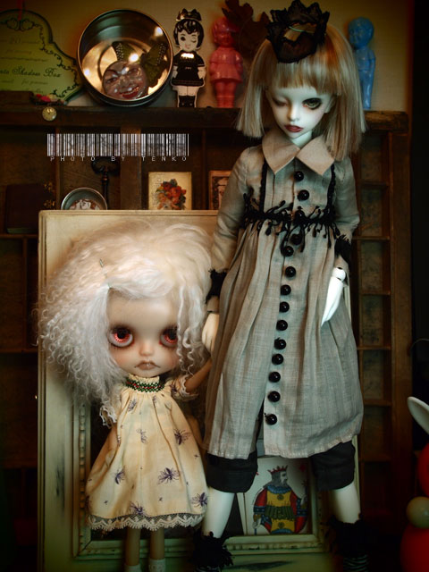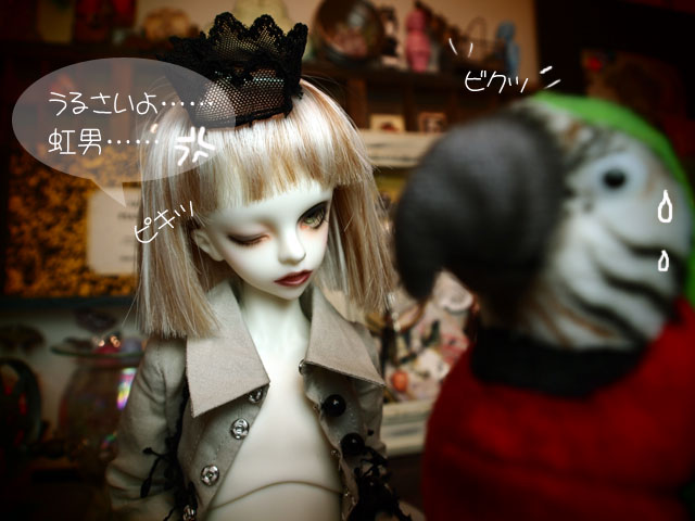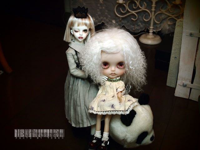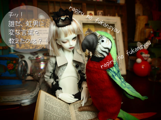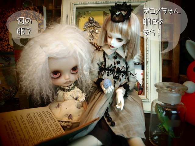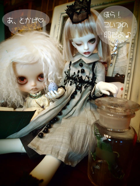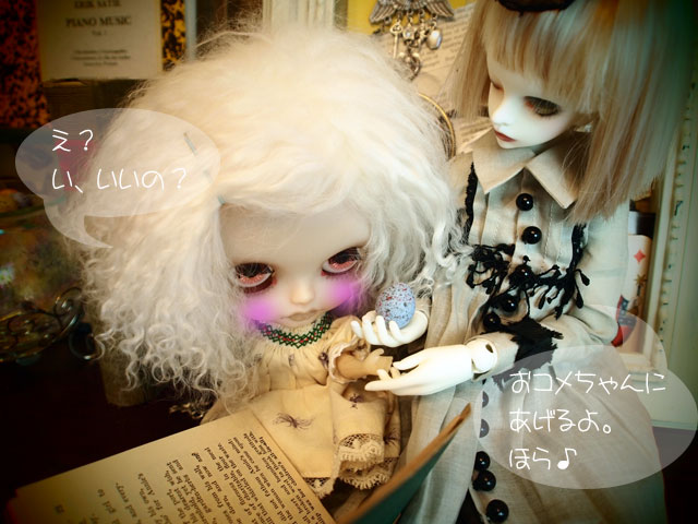 濁音を使いたかったり、「羅」は入れなくちゃ、だったりと やっと、ついた名前が ラギル@羅戲瑠 っと、また暴走族的な漢字をあててpupu (* ´>艸<)・:∴ 「羅」は我家の球体さんの証し。 そして、戯れるの「ギ」に瑠璃色の「瑠」 瑠璃色のごとく戯れるってな意味合いでね♡ どアップ。 このウィッグもまた、かわいい♡ で、ラギル王子、おはぎ谷のみんなに お話しをするの図的な(*´艸`*)♪ 誰と一番始めに、遊んでもらおうかと思ったら なんか、おコメちゃんでしょ! ってな感じで、二人早くも打ち解けておりまする。 なんか頭の大きさとかも違うし、種類も違うドールなんだけど 波長が合うのかしら? ベストカップルのようですわ♡ 心無しか、おコメちゃんの表情がなんか 甘い雰囲気だよね?? 大きさはこんなに違うし それなのに、なんかいい雰囲気♡ パンダに乗ったりして遊んだり おコメちゃんとこうやって 打ち解け合えるなら、おはぎ谷でも すぐにやっていけそうだし。 ラギル。 嗚呼、素敵な子。 しかし、ラギル。 「ホラ!」「ホラ!」って 「ホラ!」を連発してるねえ(≧∀≦) 明日は仕事だ、今週もがんばろう.:゚+<(*゚ー ゚*)>.: *:・ |