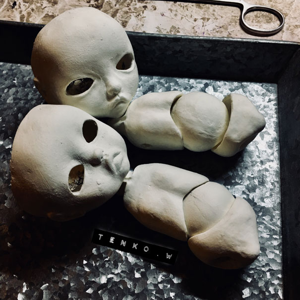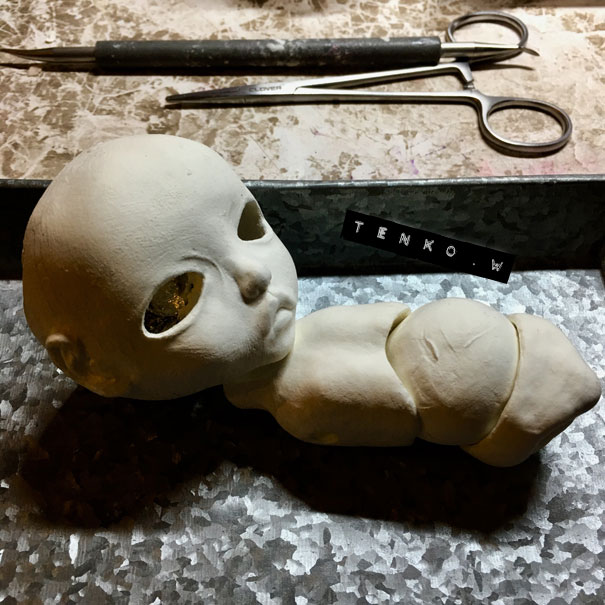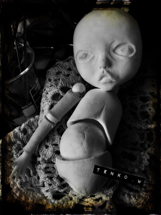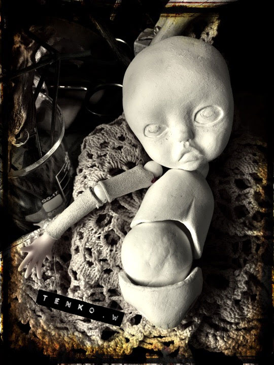 まだブラックホールの中に吸収されたまま 出てまいりませぇ〜んバタリ ....(o_ _)o...〜〜〜† な、中、来年の個展のリハビリのために ボチボチ、創作っこを作り始めておりまして 久々なのに、胴体三分割! 全然、作り始めで お腹の球体なんて まだ、乾いてないし(;´ー`)┌ でも、チラリと途中経過。 胴体分割しなくてもいいじゃない、自分。 せめて、二分割にしとけよ、自分。 という、天使なのか、悪魔なのか わからない囁きと ( ̄ー+ ̄)ニヤリ…。 やっぱりさ、ボディ三分割は 球体っこの醍醐味よねぇ! っと、囁く、悪魔なのか、天使なのかわからない 二つの囁きの中で揺れる。 時間があった若い頃は、作り急いで先がすぐに 見たくて、チマチマ削ったりが まどろっこしくて仕方がなかったのに 時間がない、今頃になって 石塑をシャリシャリ削るのが たまんなく楽しくてねぇ。 三分割、しちまいましたぜ。 20センチくらいの小さい子だけど もう数体作るつもり、でも 全員、三分割ってーことは ないと思うけど、 2体くらいは、三分割で いけたらなぁ。 あとは布のラグドールの 新作を作るために ちょいと試作しないとなっと こりゃ、ブライスカスタムして ヤフオク出品は、しばらくなしだなぁ(;´▽`A`` |