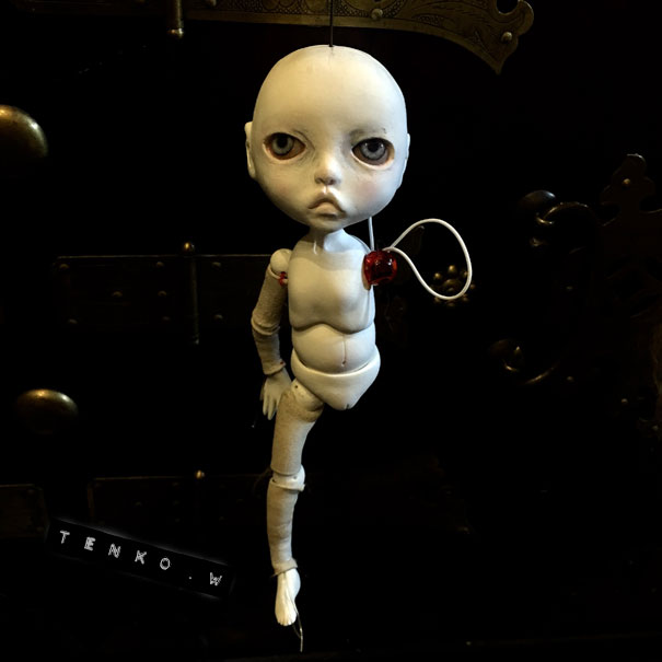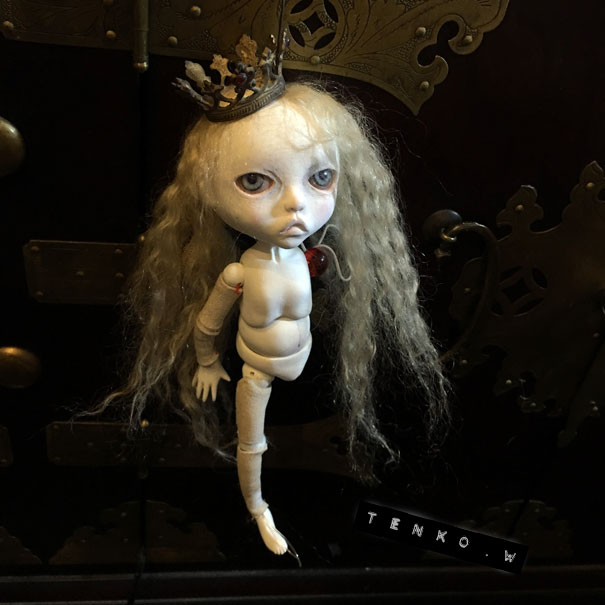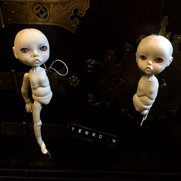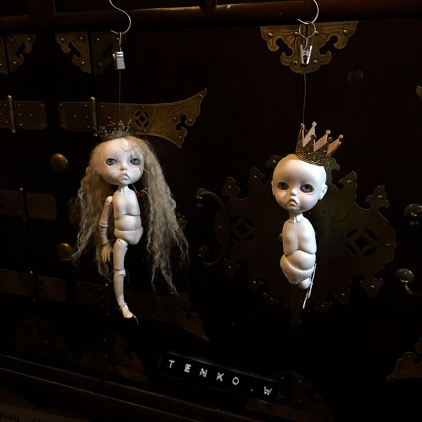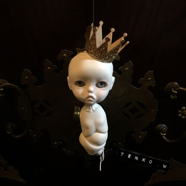 先に進まないので まだ磨きも塗装も、頭の中のフックもまだだけど 仮メイク、仮合体をしてみた。 (ノ∇≦、)ノ彡☆ キャハハ!!バンバンッ!! なんか、捕獲された地球外生命体の 標本が吊るされてるようで かわいい(笑) ツーショット。 2号にウェフをちょいと付けてみる。 一気に女の子に。 1号とツーショト。 すると、1号が淋しそうなので 王冠を ならば、2号にも王冠、かぶせて そして ツーショット。 吊るし雛でございます。 って、違うがな(笑) もし、お迎えして貰える時があって その場合はやっぱり五体満足な方が 遊んでもらいやすい。。。だろうなぁ。。 とは、思いつつも、この状態が かなり気に入って萌え状態。 完成形もいいのだけど やぱ、なんかこう、不完全な状態というのが ソソラレてしまう、私なのであります。