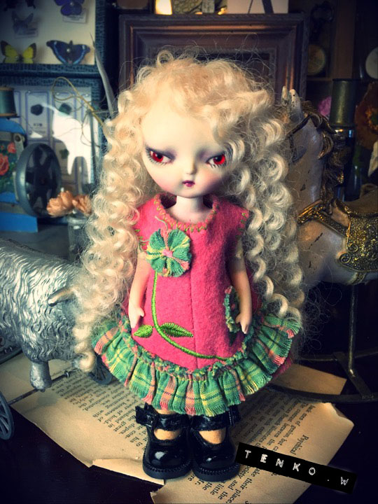 無事終了いたしました。今年最初の オークションもみなさんに見守られ、ご入札を頂き ほんとに感謝、感謝です! また新しい素晴らしいご縁に 巡り会い、ヴァネはもうすぐ旅立っていきます♪ ほんとにありがとうございました♥️ 新しいご縁、もう一つ続きます。 題府洋子さんのお人形がどっぷりと私を 「人形沼」につかるきっかけだったと いつぞやお話ししたことがあったと思います。 で、めでたく、なかなかご縁がなかった題府さんの お人形とも、去年はご縁が頂けて、 ほんとにほんとに嬉しくて(〃 ̄▽ ̄〃)エヘッ で、もうお一人、てらおなみさんという作家さん。 もうかなぁ〜り前にMから教えてもらって 一目惚れ。 いつかご縁があったらなぁ〜と、色々と 動いてはいたんですが、西の方の作家さんだったので 昔はなかなかご縁がなくてミ(ノ;_ _)ノ=3 バタ... そして、最近はこちらにも作品を頻繁に出されるようになったのですが やはり、作家さんってば、その時々でお顔が変化進化して いくわけで、それを見ているのも楽しいのですが、が、が。。。 やっぱり、もしも、お迎えできるなら 昔のお顔のタイプの子がいいなぁ。。。。 ってか、じゃあ、それって叶わないじゃん(ノ_・、)シクシク… って、思っておったのですが やっぱり、ご縁ってあるんですねぇ! ひょんな事から、我家にやってきちゃいました。 「アネモネちゃん」 というお名前がついた子です。 一気に画像イッチャイマスぜ!! ミディブライスのお洋服を着てみる。 ヘレンキッシュのお洋服を着てみる。 ちょいと大きめだけど、イケるしぃ.: *:( *´艸`).:゚+ 嗚呼、ほんとにほんとにご縁って ずっと思いを馳せていると あるのねぇ.:゚+はぁぁ…(*´▽`人 アネモネは毒のある花。 そのままの名前でもいいのだけど。。。 我家での名前はもうちょっと 考えてみよう。