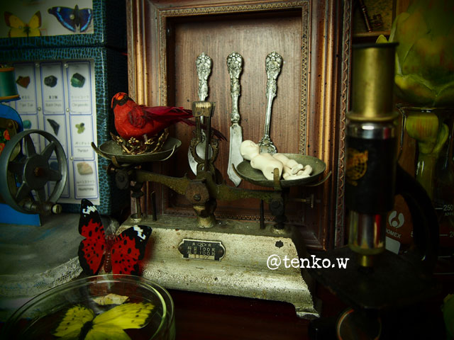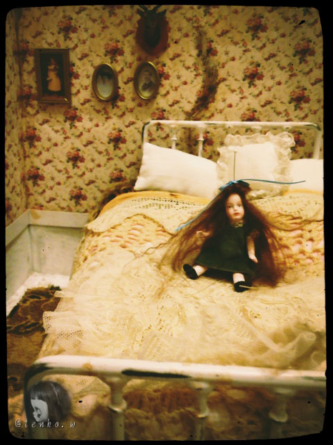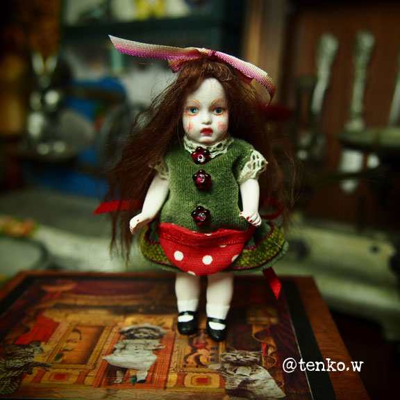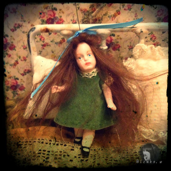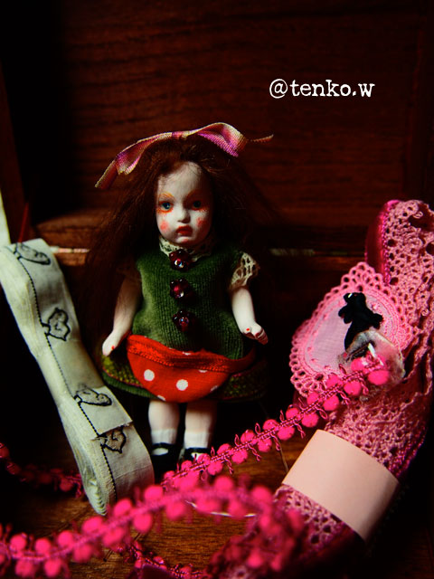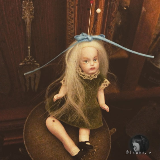 8センチくらいの大きさも ミニョネットっていうのかな? ミニョネットってのは、かわいいっていう意味だから 小さいものは、みんなミニョネットなんだろかね? で、ウィッグ作り。 途中断念して、FBにはもう、あげてあったんだけど 羊の薄い革だったら、いけるかなっと 羊毛ウィッグで、ちょいと製作。 白だったら地肌とヘアの色の差がないから 大丈夫そうだ。 (脳天マチ針刺さってるのは見逃して。脚もはぐれてるけど見逃して( ̄▽ ̄;)) けど、一度挫折した、ウィッグ作り。 やぱさ、途中で投げ出すのって よくないよね<(;~▽~) と、一念発起(それほど大袈裟でもないけど、やぱ 一度挫折したモノをもう一度やるって、けっこう腰が重いのだけどね) して、再度挑戦! 最初、作ろうと思ったウィッグが クルクルカールだったのが間違いだったらしい。 今度は、羊毛を切り取って、少しずつ貼っていった! (これまた、脳天にマチ針刺さってるのは見逃して。脚はついてるよ。今度は(笑)) 頭頂部の不自然感は、ポンパドールヘアにする事で 誤摩化せる←(; ̄ω ̄)ノ オイオイ… から これは、これでイケるんじゃね〜の?! おっし、やっぱり、羊毛ウィッグじゃなくて、ウィッグキャップに貼付ける方式でいこう!! さて、最後は、お洋服のモリモリだ!! |