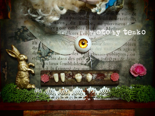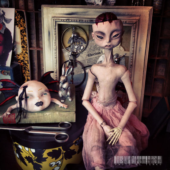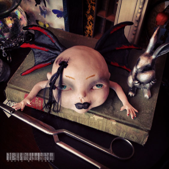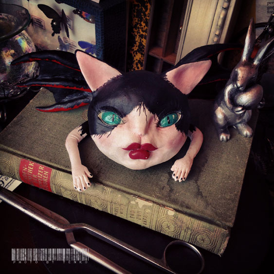 「ピンクベイビーちゃんは嫁ぎ先決まりましたか?」 というコメントを頂きました。 ピンクベイビーとは、むかぁ〜し昔その昔の創作っこで ↑この子。 覚えていてくださる方、いらっしゃるかなぁ(;´▽`A`` ショップに出してたんだけど、嫁ぎ先が決まらなくて うちの子に……。 ってな具合になってたのですが。。。。。 で、お問い合わせを頂き、捜索大作戦を繰り広げたのですが……。 ミ(ノ;_ _)ノ=3 バタ... 見つからなかった(/_;) M様。申し訳ございません。 どこへもお嫁に行ってない記憶なのですが (あ、もしかしたら忘れてたりして(;^ω^) 「私の所にお嫁に来てますわよ! お忘れになったのヽ(`Д´)ノ!!!」 という、メッセもお待ちしてます( ̄▽ ̄;)) どこにも、見当たらないのです!! せっかく、お問い合わせを頂いたのに、ご期待に添えず 申し訳ないです。 引っ越しでどこかへ旅立っていってしまったのか、 我家のどこかに眠ってるのか。。。。 なので、今回は、ピンクベイビーの事は忘れてくださいませ<(_ _)> で、捜索大作戦の副産物として 以前に、作った子たちが出てきたぁ(笑) まずは、頭こうもり 猫頭こうもり 招き猫 ↓おうちが決まりました♡ 脳髄ちゃん 懐かしいなぁ(  ̄^ ̄) トオイメ… なんかハロウィン画像じゃないんだけど ハロウィン的ガゾになってるから笑えるぅ。 気になった方はお問い合わせくださいませ(〃∇〃) てれっ☆ 何年かぶりで、ダンボールの中から娑婆へ出て 嬉しそうなヤツラ。 M様のお陰です♪ M様、お問い合わせ、ほんとにありがとうございました!!! これに懲りず、てんこドール見てやってくださいねん♡
