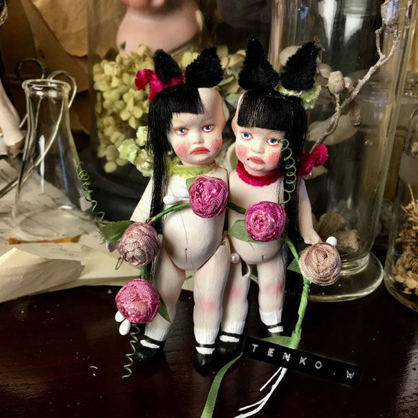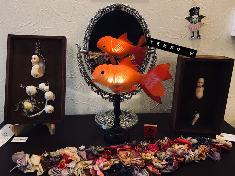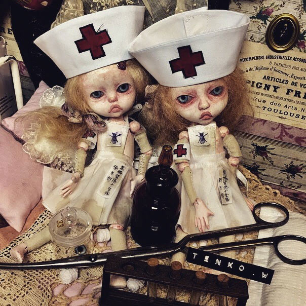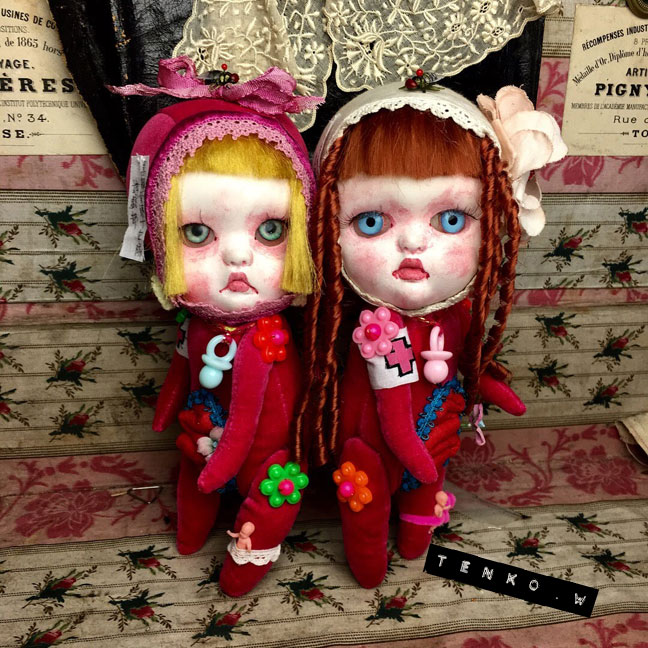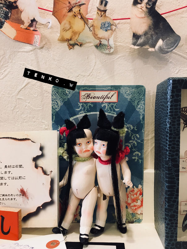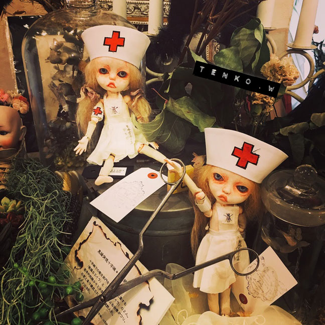 木曜日から始まりまして、4日目を迎えております。 初日から遠い所、多くの方々に来ていただいて お迎えもしていただき、 ほんとに、アリガト━━゚.+:。d(≧▽≦)b:.。.+.:━━ッ!! 私の部屋をごっそり川越に移動したってな感じで 大満足の展示になっておりまする。 まだ会期終了まで存分に時間がありますので もしも、お時間がおありでしたら ぜひぜひ、この空間に身を置いていただきたい!!! で、も! 遠くて行けないわな皆様。 明日から、通販、始まります。 通販に関しては 過去記事の 「TENKOTENの通販について」 に、詳細がありますのでご確認くださいませね。 お電話頂いた後の事務的なお取り引きとかは、SMS/MMSのメッセージで させて頂きますので、携帯電話(ガラケー、スマホ)のみでの お問い合わせとさせていただきます。 で、おおまかな、お迎え状況をお知らせしておきますね。 imda Gian ゲンマイ(ブライス) ミモザ(ブライス) アナベル チビウサ ピンクサーカス熊 解剖ちゃん(出品した子全部) 以上の子たちは、お家が既に決まってしまいました。 <(_ _)> そして引き続き、おコメハウスお迎えエントリーも やっていますので、よろしくお願いいたします。 エントリーフォーム 現在、ギャラリーでの分、ネットの分、併せて3件のエントリーが あります。 まだ、DMを飾っている、黒縁背徳十字隊の遊戯部の2人(各¥45,000) クッタリーネ(ティン缶入りセット*¥30,000)、クッタリーナの2人(ガラスドーム入り*¥30,000) シャム双子(¥20,000) ちょう子(¥48,000) 昨日は自立してました.: *:( *´艸`).:゚+ 黒縁背徳十字隊 衛生部の2人(向かって左で髪を結んでるのが生羅、医療鉗子を持ってるのが衛羅*各¥40,000) な、子達、お迎えを待っております。 また、オブジェ(各¥15,000)とか FLY HUM(¥40,000) とか、おうちを探してる子、一杯いますので よろしくお願いいたしますね。 また、これから、細々したモノも インスタやFB、ツイッターなどでも ご紹介いたしますので♪ もちろん、ギャラリー全体とか 最終日まで、色々と、紹介させてくだっさい!