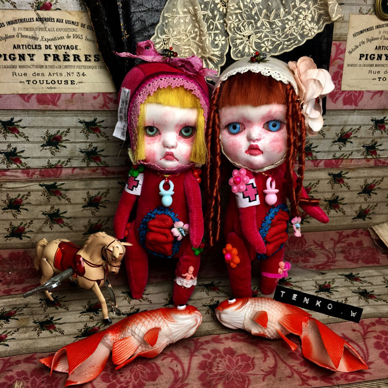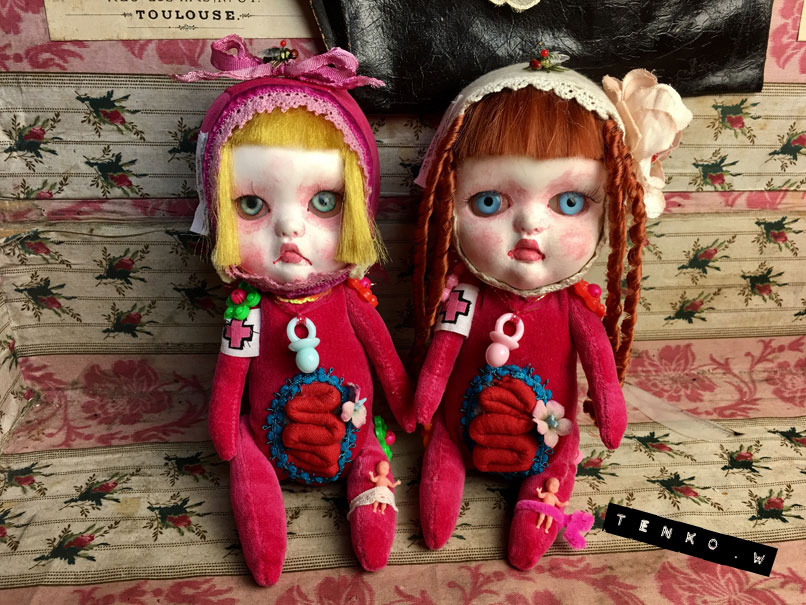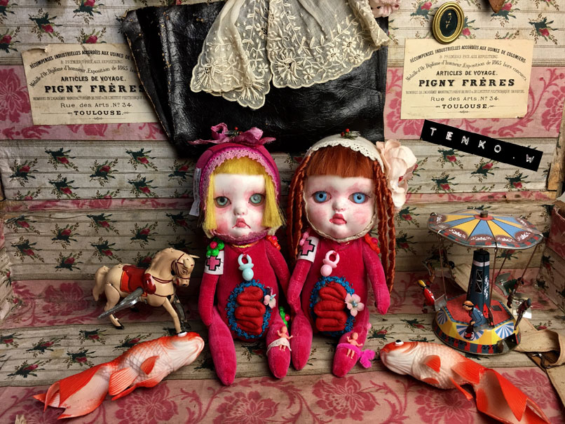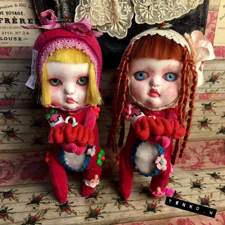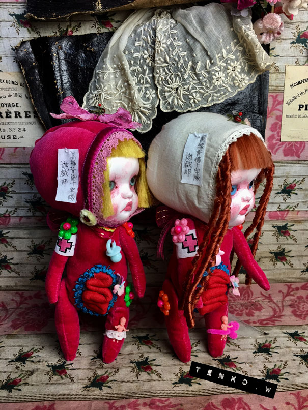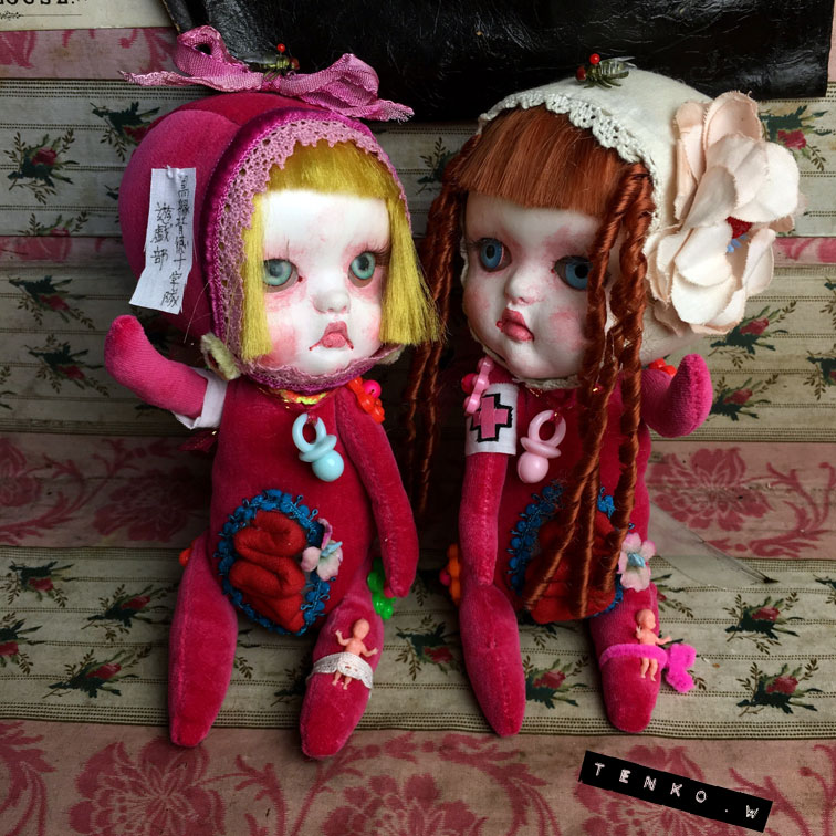 「黒縁背徳十字隊 遊戯部」の 2人も完成しました。 2人「私たちぃ!」 2人「黒縁背徳十字隊 遊戯部!!!」 可動は手足そして頭部も左右に動きます。 そして、腸! お見せできますのよ.: *:( *´艸`).:゚+ 2人「私たちの『腸』です!」 っと、取り外しOK! 足首に付いてる小人さんも 外せます。 そして、頭部には、 それぞれが、採取した 「ハエ」が 昆虫採集仕様でピンで差してあります。 これも取り外せまする。 なかなか、かわいい遊戯部が誕生しました! そして1月は終わっていくのであったバタリ ....(o_ _)o...〜〜〜† 個展は4月5日〜30日 水曜日休み 川越の「ギャラリー RooM」さんで やりまする。