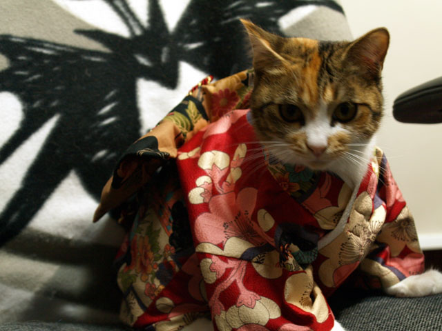 猫にも着物。なかなか江戸のお猫さまみたいで