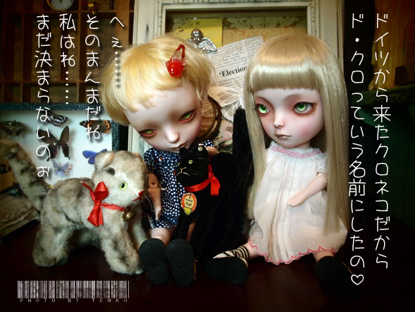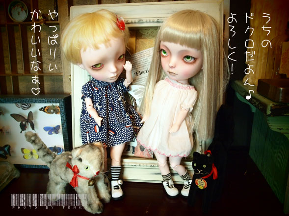 これが妙にツボった(((*≧艸≦)ププ…ッ My Dollingさんちの娘らって イイ意味でアクの強い娘たちなのに それに負けないオコメちゃんスゴイわ~ てか、もしかしておコメちゃんはてんこ家で最強? ドイツうまれの黒猫のドクロ(・∀・)イイネ!! デフォルメされつつも、妙に姿勢がリアルだ~ 昔見た、靴下を怖がる猫の動画思い出した(笑 Re:無題