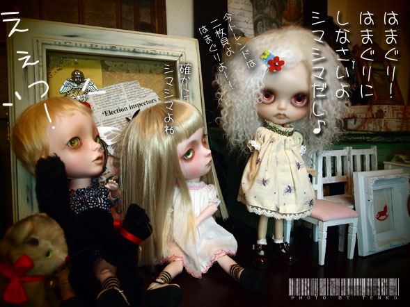 でしょでしょ、驚愕ポーズ ナイスでしょぉ〜!!! 黒猫って、神秘的でさ、どこか怖くて でも、やぱ魅力的な♪ だけど、このドクロは、名前はドクロだけど お顔とかすんごいホヨヨ〜〜んって してるでしょぉ.: *:( *´艸`).:゚+ そうなの。はまぐりはマカロンちゃんが ビシっと推薦してくれたのよん。 なかなか賑やかな、この4人。 なんか、カルテット名でも決めないと カテゴが今、「ブライス」だったり「リュラ子」カテゴに 入れてるんだけど。。。 今度は、このカルテットのカテゴの名前を決めたいと 思ってきた。。。 今度は公募するかね??(笑) >しかし、おコメちゃんのヒト声って偉大なのね(* ̄Oノ ̄*)ホーッホッホ!! まさに、番長!!! (。・_・。)(。. . 。)ウン(。・_・。)(。. . 。)ウン