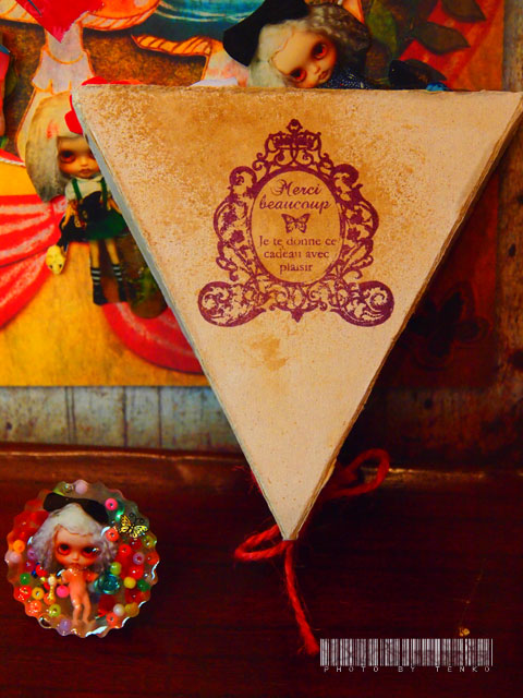 出勤が水木金と3連続になって (;*´>д<)、ハァハァ やっぱり、3連続出勤は疲れるってか やりたい事がなかなかやれないねぇ(≧△≦) でもって、そんな中、おコメちゃんセット販売に向けて ラッピング中。 ガーランドとカードケースは 平らだからいいとしても 指輪(1セットはマグネットになります)は 容積があるから やっぱり箱に入れた方が良いよね?!!??? っと、しかし、どんな箱にしようかと 試行錯誤してて時間かかっちゃった。 で、三角なお箱製作。汚しかけたりして 詳細はまた、ショップで紹介しますが こんな感じの物達を販売します。 セットは3セット。 カードケースは3セットともデザインが違います。 でもって、2セットは指輪、残り1セットはマグネット。 てな感じです。 あくまでも、あくまでも オモチャなグッズたち♪ 市販の既製品をイメージしちゃあいけない(笑) チャッチイおもちゃを買うつもりな そこの、貴方!! よろしくお願いします.: *:( *´艸`).:゚+ 来週には販売できるかしらん?? ┣¨キ(*゚д゚*)┣¨キ PR |