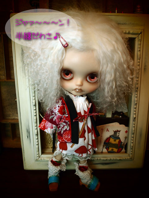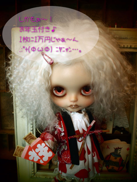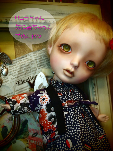 見上げて、つぶやいております。 (/▽\) イヤン おコメちゃん、半纏 カワイイ―゚.+:。ヾ(≧▽≦)ノ゙☆゚・*:。.:―ッ!! なんか、こう、あどけないじゃぁ~ん.: *:( *´艸`).:゚+ って、事はもう1枚ありって ことですねん♪ 半纏が保護色のようになって よく見えないって( ̄▽ ̄;) いや、あえて、あえてです。 同系色を選んでみたんですが……。 やぱ、ちょっと目立たない。 でもでも、カワイイ―゚.+:。ヾ(≧▽≦)ノ゙☆゚・*:。.:―ッ!! なんか、ラレ子すんごく素朴で .:゚+☆⌒(*^ー゚)b グッ!! おこたはダメ! だって、ぐーたらしちゃうからね( ̄▽ ̄;) 半纏の販売の日に 夜、パソ開けなくてさぁミ(ノ;_ _)ノ=3 バタ... ほんでもって、そこここで半纏を着てる子たちを見て 指をくわえてたら♪ YUKOちゃんのご好意で オーダーさせていただいちゃいました。 やぱさ、日本の伝統のこういうモノを ドールが着ると、なんかいいよね。 でもって、かわいいのに感動したのは言うまでも ないんだけど、ちゃんとね、 半纏のヒモが細いの!! これ感動したぁ~。 意外にさ、こういうヒモって、 太かったりする事多くない??? それが、ちゃんとドールサイズに細いのが ほんとに感動した。 細部へのこだわりっちゅうヤツやね♪ で、細部といえば、お年玉とか 少年ジャンプまでも頂いちゃって♪ それがまたクォリティ高くてさぁ。 ほんと 「リアルな小物がドールライフを 楽しくする♪」 だねだね。 YUKOちゃん、ほんとにありがとうございました。 YUKOちゃんのショップ、平成キャンディーズでは もう3年目の半纏販売。 また、来年も冬になったら販売されるのかしら? 「来年は!」 と、狙いを定めた方♪ ショップは ↓こちら 「平成・キャンディーズ」(今は、閉まってます) です。 いやー、しかし、寒いね。 底冷えっちゅうヤツだ。。。 ブルブル…{{{{(;>_<)}}}}…サムイ… あ、そうだ。 追伸! おコメちゃんセット。 カードケース以外は、ガーランドと指輪 再販する事を決定しました.:゚+<(*゚ー ゚*)>.: *:・!!! もうちょっと待っててねん。 PR