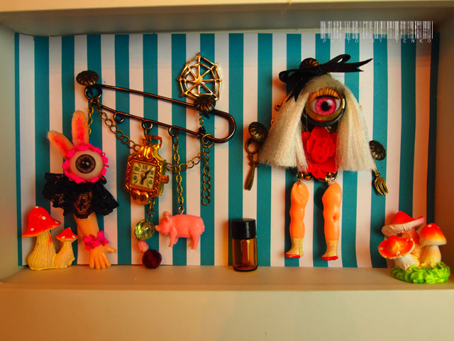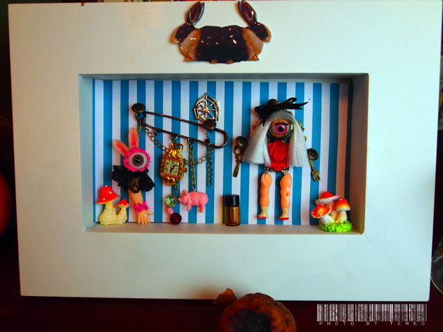 作り始めた、アリスをモチーフにした アクセであってオブジェなブツ。 昨日はアリスのペンダントヘッドをアップしましたが 今日は、その全貌を←大袈裟な(笑) おおまかにこんな感じで 1点物のセットで販売予定です。 (背景は今はペーパーをちょいと置いてるだけなので すみませぬ。お見苦しくて(;´▽`A``) かぶとピンのブローチは まだこれから少々盛ります(^o^)v アクセとして使う時はここから取り外して 使わない時はこうやってディスプレイしておけるってな ブツであります。 価格はセットなんでちょっとお高めになっちゃうかもだけど 欲しいっていう方いらっしゃるのかなぁ???(^_^;A 引き続き、完成に向かって がんばりまする! *****拍手コメへのお返事***** み**様 いつもご覧になっていただいているようで 嬉しいです♪ (ノω≦。)…ジーン… とっちらかったブログですけど また遊びに来てくださいねん♡ PR |