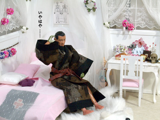 画像は、ラブリーなお部屋にお泊まりされた健さん。。。。