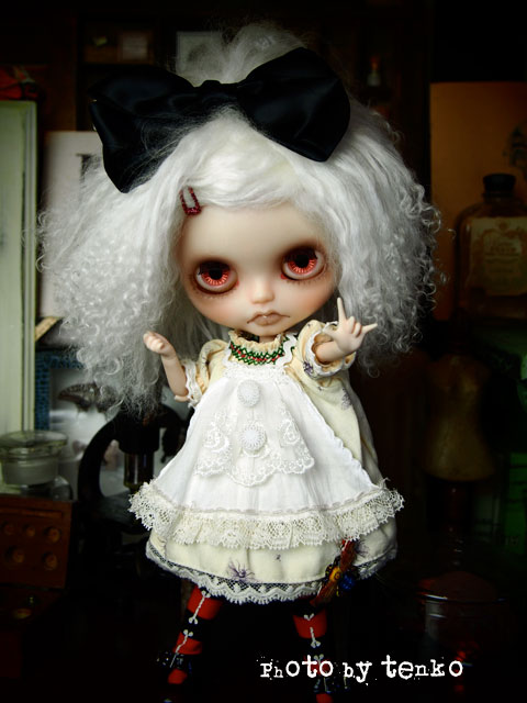 無事終了いたしまして、ご入札、見守り隊 どもども、ありがとうございました<(_ _)> 初めて、ご入札頂いた方とかもあり、幸せ♪ そして本日、落札者様の所へ無事到着したとの ご連絡を頂きました。 素敵なご縁をまたありがとうございます❤️ で、次は、ブライスカスタムで、 今回AmelliaのOFにも作った「ジレ」を ブライスのOFにも使おうかなぁと。 余談だけど、おコメちゃんの左手のハッピーハンドパーツって 確か、まことちゃんの「サバラ」だよねpupu (* ´>艸<)・:∴ で。。。。。 「ジレ」って、よだれかけみたいなヤツ?(;´▽`A`` 調べてみると 「スーツなどを着るとき上衣の下に着るブラウスがわりの胴衣。おもに女性用で,袖なし,脇で紐結びが多く,フリルやレースなどの飾りをつける。もともとは男性の着たもので,1770年代にイギリスから短い新型の胴衣(ウェストコート)がもたらされ,フランスではこれをジレと呼び,ジュストコルという上衣の下に着た。18世紀には上衣とともに丈はより短くなり,袖なしになった。19世紀中ごろに今日の背広服が確立されてから,チョッキとして用いられてきた。」 と、あって、ベストとジレどう違うのよ?的な。 ま、なんとなく、モーツァルトとか、ベルバラとかで、 男の人が、ブラウスの上に首周りに付けてるヒラヒラなヤツってな イメージで作ってみたのですが。 ま、なんでも、いいや、かわいければ(笑) もうちょっと、何か盛ってっと、考えてます。 そんでもって、この前、おコメちゃんケシハンを作った時に バックにウニュウニュと模様とか図形とか描いていて 学生時代を懐かしんでおったのですが、 ハタと、また、やってみたくなって、チョコチョコと描き始めました。 あ、で、ケシハン、リボン塗りバージョンもやったりとか チマチマ作業がとまらなくって( ̄▽ ̄;) 途中だけど、もう1匹、ペタリ。 これ、パソに取り込んで、泳がせてみたり、コラージュしてみたりしたら また、楽しいかもぉ〜♪ いやいや、やりたい事、一杯でするわねぇ。 しあわせ.:゚+(u_u*).:ポッ+ *******拍手コメへのお返事******* R*******ちゃん ほんとこんなにおコメちゃんが ハジケてくれるとは思わなかったわぁ〜!!! なかなか、遊びがいのあるパーツだわ。 基本的には、やっぱり、ブライスは、もとの 不自由なボディ、もしくは、リカボディが一番似合うなと 思ってはいるのだけど、こうやって ハンドパーツでこれだけ遊べると しばらく、おコメちゃんは、このまま ピュアニーモボディでいてもらいたくなっちゃう♪ (*^-^)うん! おコメ劇場、がんばって貰わねば。。。(って、違ッvv) 「だわさ」やっぱり、どうも、 伝染、するみたいだわさpupu (* ´>艸<)・:∴ PR