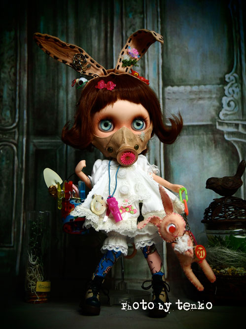 盛りまくったよぉ〜! そうそう、ウサギわしづかみだもんねpupu (* ´>艸<)・:∴ 色々とわしづかみできそうな子だと思う。 ヘビとかカエルとかさ(笑) 一応、ガスマスクのつもり(;´▽`A`` 一つ目ウサギを捕りに行く森は ガスが出やすいからねぇ〜(〃∇〃) てれっ☆ と、まあ、自分の中では妄想全開の セットになったよぉ〜! ボディ! よりお話感が盛り上がる感じで なかなか、こういう設定には とてもおもしろいわぁ。 撮影、順調ナリ。 明日出品に向けてがんばるわん(^o^)v