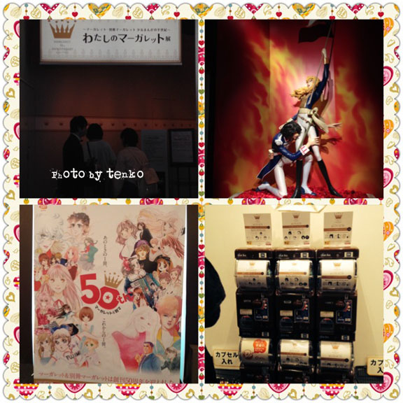 号泣していたかもだった……。 少し、長くなります.:゚+(u_u*).:ポッ+ 昨日は、六本木ヒルズで開かれている「わたしのマーガレット展」(ドールカルチャー展もまだやってたよぉ)にjちゃんと行ってきました。 jちゃんが事前に情報を入手した「オープニング特別映像」。 なんでも「必見だ!」という事で、(*´∀`*)ワクワク。 会場へ入ってすぐに、完全入替え制3分で、特設カレイドスコープ型スクリーンに上映される。 だいたい、こういうのって、必見っつっても大したことないだろなぁ〜なんて 思ってたら、ヤラレテしまったよぉミ(ノ;_ _)ノ=3 バタ... いや、ウルウルしちゃって、恥ずかしくてさ、照れ隠しに 「いやー、なんか、アハハ(〃∇〃) てれっ☆」と言いながら、jちゃんに 知られないように、ハンカチでこぼれそうな涙をちょいちょいと拭こうと思ったら キャ━━゚+.ヽ(≧▽≦)ノ.+゚━━ ッ ! ! ! jちゃんも、ウルウル!!! いやー、やっぱり、泣いちゃうよねぇ〜! ほんと、あと1分、長かったら、嗚咽して号泣してたね、多分+.Σd(>∀<*)♪゚+.゚ ドールカルチャー展は撮影自由だったけど、さすがに原画などがあるから 指定ブースしか撮影は許されてなくて、 左上から入り口、右が等身大、オスカルとアンドレ。左下がプリクラの垂れ幕。 そして、右下がおばさんたちが群がる、ガチャガチャ(笑)撮影するのに苦労したよぉ。 もうね、少女時代にグワァ〜ンっと遡ったねぇ〜!!! 「エースをねらえ」、や、「ベルバラ」は、当然のことだけど わたなべまさこの「ガラスの城」や、つちだよしこの「 つる姫じゃーっ! 」 水野英子だの、アタックNo.1、そして、そしてアランフェスに。。。もぉ〜〜〜!!! etc.etc......すっかり忘れていた、漫画も、見た途端に 「あぁ〜〜〜〜!! これこれえ〜〜〜!!!」 と、jちゃんと感動しまくっておりました。ジ━━…(〃´-`〃)…━━ン さすがに1980年代以降は (?ω?) ってな感じのモノが多かったけど、それでも、それでも、 夢のような空間だったぁ〜! で、衝撃的だったのは、私の中のホラー漫画のルーツ 「楳図かずお大先生」だとばっかり思っていたら 違ってたぁ〜〜〜!!! 古賀新一!!! その人だったよぉ〜! 人面疽が「チチチ」と鳴いているその原画を見た途端! 呼び覚まされた記憶ぅ〜〜〜〜!!! (ノ゜0゜)ノ オオォォォォォォー 古賀氏のポスカ、買いました。 もう、ほんとに感動しまくり(笑) 会場を出ると、その感動に輪をかける「限定グッズ販売コーナー!!!!!」 お財布と相談しながら、チマっとお買い物しました。 そして、ちょっと遅いお昼をヒルズの中では比較的お安いRIGOLETTOで♪ デカイ、ハンバーガーをヒィーヒィー言いながら、たいらげて、 ヒルズを散策して、帰路につきました。 .:゚+はぁぁ…(*´▽`人 素敵な時間だったぁ〜! では、戦利品をば! あの頃の少女は、「老眼」になっているだろう。。。という スタッフさんたちの温かいお気持ちのこもった LED付きルーペ。わたなべまさこさんの「ガラスの城」バージョンだったので ゲット! 「エースをねらえ」の絆創膏。 ええ、これは使いませんとも!!.:゚+<(*゚ー ゚*)>.: *:・ ポスカは3枚。「 つる姫じゃーっ! 」「ガラスの城」「まだらの毒ぐも」 「まだらの毒ぐも」これが古賀新一氏の漫画なんだけど ネッ(*´ 艸`)(´艸 `*)ネッ 楳図かずお大先生の絵に似てるでしょぉ〜〜〜〜! なので、ずっと、私は、これも、それから、人面疽も、古賀氏の蛇女も ぜぇ〜んぶ、楳図氏のモノだと思っていたら、違ったぁ〜! なんか、ほんとに大感動! 図録も買ったんだけど、その中にも 原画の写真が一杯載ってて、なるほど、楳図氏だと思ったのもうなずけるでしょぉ〜! 公式図録とかチラシとか。 公式図録。チラっと見たい??? (*´艸`*)♪ まず、巻頭は、見開きの歴代の表紙。一部を紹介。 懐かしい表紙でしょぉ〜! そして、一条ゆかりさんの原画。これ会場にもあったけど 図録をパチリ。 それから、お昼のお店のレシート(この紙質と打ち出された印字が好み)とjちゃんに貰った ハロウィングッズとヒルズの下のお店で買った、ミニチュア。 もぉ〜、大大大満足のマーガレット展でした。 (〃 ̄▽ ̄〃)エヘッ 感動してる漫画で、年代バレバレぇ〜〜(笑) さすがに、ケネディ大使のキャロラインちゃんの記事は読んでないけどねぇpupu (* ´>艸<)・:∴ *******拍手コメへのお返事******* M******様 いえいえ、一杯コメしていただけるの とっても嬉しいです(≧∀≦) そして、ショップ。チマチマと製作チウですが 2着しか販売できないミ(ノ;_ _)ノ=3 バタ... そんな、カメな私ですが、よろしくお願いします。 そして、土曜日。 ほんとに、長かった。 ってか、まだ、金曜日ですが♪ ほんとに┣¨キ(*゚д゚*)┣¨キです。 PR
