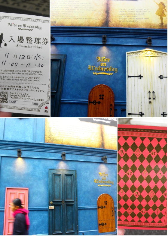 「水曜日のアリス」に jちゃんと行ってきました。 11時開店なんだけど10時から整理券が配布になるという事で 9時20分に原宿駅に待ち合わせ。 現地に到着すると10人くらいの列が既にできてた。 しかし、思ったほどでもなくε-(´▽`) ホッ 整理券を貰う。 やった! 11時にはお店に入れるぅ〜! お店の外観はこじんまりしてて、4つの扉が♪ 入るのは、一番小さな扉から、大人はちょっとかがみがちに入る感じ。 10時にはまだ原宿もお店もそんなに開いていないんだけど パラパラと開き出した竹下通りのお店などを冷やかしているうちに 10時50分。指定された場所にならぶと15人単位で中に入れるということで やた! 一番最初の組だぁ〜! 店内に入ると、そこはアリスの世界。 整理券にあった、スマホアプリをDLすると、何かが見えるよっていう アプリを入場前にDLしておいたので、その場所でスマホをかざすと チシャ猫が飛び出してくる。。。。っていう、まあ、それだけのアプリだったんだけどね(笑) で、さっそく、店内を散策。 が、しかし、まあ、ヒト、人、ひとでなかなか お目当てのブツが見られない( ̄▽ ̄;) 二階のきのこの上の芋虫さん。 jちゃんがきのこの森で迷子になってる、ヤギテンコをパチリ(笑) 色々と買い物をして、店内を堪能して、1階のレジに♪ (まあ、ここもめちゃ混みなんだけどね(;´▽`A`` 並びます。) その間に、店内をまたパチリ と、列の前には、入り待ちしてた時に、チラと見かけた トランプのウサギさんが!!!!(≧∀≦) 2匹? やっぱり1匹? いや、やっぱり 3才の双子ちゃんのトランプウサギ! こりゃもう、かわいくて、「水曜日のアリス」にオマケつきぃ〜〜〜! な、ラッキーじゃぁ〜ん♪ っと、ここまでキイボード打ってて、腕が筋肉痛なのに 気づく。。。 というのは、「水曜日のアリス」で「きのこ狩り」してきちゃってpupu (* ´>艸<)・:∴ それが、デカイのよぉ〜。。。。(ノ∇≦、)ノ彡☆ キャハハ!!バンバンッ!! 重くてさぁ。 お店を出たあと、原宿でお昼 その後、新宿へ移動して、オカダヤなどで買い物をして 最後にお茶して お別れしたんだけどね。 とにかく、ボディブロウのようにきいてくる重さ。 それがその「きのこ」ですだ! そして、前にあるのは戦利品。 と、いっても、「水曜日のアリス」では、他にタグメッセージカードしか 買ってないわ(笑) 原宿という場所柄、ターゲットは若い人たちで 一つ一つのブツがお安く、アクセなんかも600円とか手軽に買えるお値段だったんだけど おばちゃんには、ちょっと、可愛過ぎるモノが多かったかしら( ̄▽ ̄;) なので、。。。pupu (* ´>艸<)・:∴ だけど、空間は充分に楽しめた、「水曜日のアリス」でした。 jちゃん、またまた楽しい時間をm(*>▽<*)m アリガトッ PR