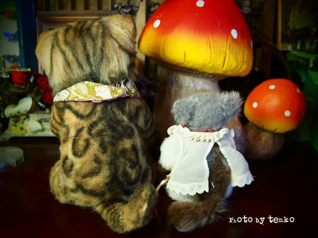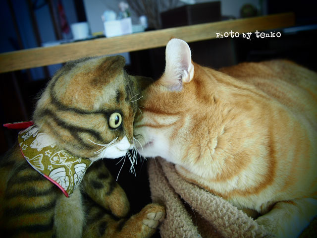 多くのウオチとご入札、応援、 ありがとうございました。 無事終了して、連休明けには、落札者さまのもとへ 旅立っていくべく、キロちゃん、待機しております。 今回も素敵なご縁に恵まれて、本当に幸せモノです。 オークションのちょっと前に、大きな地震があって 被害に遭われた方々の事を思うと、こうやって 無事、オークションを終了させていただけた幸せを しみじみと噛み締めました。。。。.:゚+(u_u*).: そして、今日は、おはぎ谷に、「カミユ」がやってきたぁ〜! おはぎ谷に、あじゅはいる。 アジュリーナという名前になって♪ で、みゆが居ないのは、やぱ、なんか淋しくて。。。。 fbでケイタベアさんの、ベンガルちゃんを見た時 「こりゃ、この子をみゆにしちゃえ!」 って、ひらめきまして、我家に、ベンガルちゃん やってきました。 みゆ、そっくりに作っていただく、オーダーというのも できたみたいなんだけど、あんまり、そっくりだと 情が移りすぎたりしちゃうから、「みゆかも?」「みゆらしい?」ってな 具合がよいかと.: *:( *´艸`).:゚+ ベンガルちゃんなので、みゆより、ずっと柄が濃いし 背中は、豹柄♪ アジュリーナと並んでパチリ。 2人で何やら会話をしたり みゆと挨拶をしたり ちょっとハシャイでみたり♪ カミユ、今日からおはぎ谷の一員であります。 って、また住人、増えちゃったしね、おはぎ谷( ̄▽ ̄;) PR