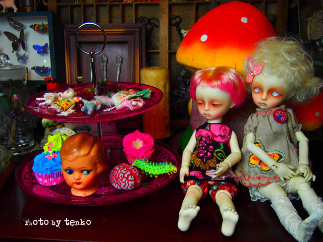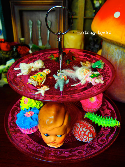 遊べそうだしねぇ〜(笑) 最初はアクセサリのディスにと思ってたんだけど こうやって、お人形遊びに使ったら 楽しくて♪ 人形部屋のブツになりそうだ.: *:( *´艸`).:゚+ そうそう、このプレートはそんなに大ぶりじゃないので imda3.0ならそんなに、デカって感じではなくて (まあ、デカイけどさ(笑)) ブライスとかでも(巨頭だし)イケそうだしね。 もちろん、おはぎ谷でのパーティにも 使えるよね♪ もっと毒々しいモノが並びそうだけど(笑)