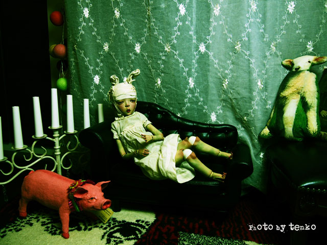 ビスクが着てたドレスなの。 もっと小さい子なんだけど、ビスクはポッテリしてるから 羅兎も着られる♪ ほんとに、妖しいのに、ラブリーな羅兎なの.:゚+(u_u*).:ポッ+ |