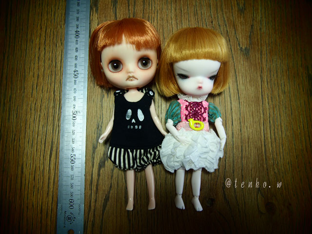 昨日、ヘッドは幼SD(6〜7インチ) ボディはミディブライスくらいかな? と、書きました。 ヘッドは間違いなく、幼SDサイズで大丈夫+.Σd(>∀<*)♪゚+.゚ で、本日、ボディのサイズ検証をいたしましたよん。 こんな感じ、ミディとお洋服を交換 で、次はまっぱ画像、失礼<(_ _)> こうやって見ると、足がミディの方が長いし 背丈もちょいと小さいので、ワンピなんかは、 「お姉さんのを借りて着た」な感じになると思われ。 それと。。。。最大のネックは、ハンドパーツ!! やぱ、ミディも、手が小さいからねぇ(≧△≦) ミディの袖アリは、キッチリ作ってあるモノはNG× 2枚前の画像のワンピはワンダOFなのだけど(これもギリッギリ) ワンダモノも着られるけど、やっぱり、袖がネックだ。 ニットものとかなら着られる可能性は大。 ↑は、両方ともワンダ服。ちょっと、身頃丈が短いけど それでも、イケるね。 それと、自立はこんなに上手なのだけど、おすわりがちょっと苦手。 俯いて座るのは、まあイケるんだけどね。 ちょいと天を仰ぐと。 と、巨頭ゆえ、コケます.: *:( *´艸`).:゚+ お洋服。ワンダとかミディとか、ヘレンキッシュとか 小さいサイズの仔たちのモノがどれか着られる。 でも、どれもってわけじゃない。 ってな感じ、( ̄^ ̄;)ウーン 洋服難民。。。一歩手前って感じでしょか? 手持ちなら試せるけれど、新しく買うとなるとネットとかでは 試せないからねぇ(~_~; それに、なんとか、ハンドパーツ外してとか、ハンドが通ったとしても 二の腕がかなり太いので、そこを通過できるかどうか。。。それも重要なこと!!! 色々とガサガサ探して、豚さん(ELFDOLL)のとかも大丈夫。 骸骨のオールインワンOFはエメのだから、エメ服も 一部大丈夫かしらね? ってな事で、検証っちゅうような、ちゃんとしたモノじゃないけど これからお迎えしようかなって思ってる方の ちょっとでも、お役に立てば、です❤️ あ、そうだ。名前、名前ねぇ。。。。(ー'`ー ; )うーむ。。 *******拍手コメへのお返事******* r******ちゃん かわええよぉ〜! .:゚+(● ̄ー+ ̄●)ゞデレデレ… やぱ、秘密屋さん仔は いいわぁ〜! 増殖が怖いナリ〜〜〜〜(笑) PR