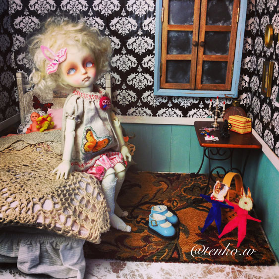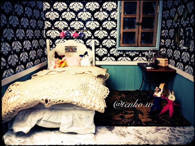 いい感じ! 窓枠とか、年季の入った物になってますね(^_^) 関係ないかもしれないかもだけど、 このベッドのシーツとか、かけ布団が すごいいい感じ〜〜〜。 てんこちゃんのドールにふさわしい お部屋になりそうですね(^_^)☆ Re:無題