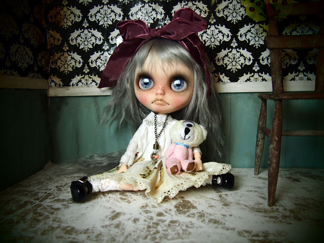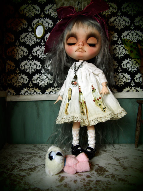 ┣¨キ(*゚д゚*)┣¨キ ほんとに、何年何度やっても ヤフオク終了日はソワソワです! ほんとに、私のブライスを良く見てくださって 嬉しいです。 そうです、bibiは、別として、 その前までは、下まつげは ギダギダまつげでした!!!! そして、今回は、ちょっと暗いキツメな感じを 出すために、普通のマツゲです。 ギダギダまつげは、 時計じかけのオレンジみたいな感じで 大好きなので、またこれからの カスタムっこにも描くと思います❤️ その時の、その子のどういう雰囲気を出したいかに よって、微妙に色々な所を変えたりしているのですが それも、自己満足に近い形だと思っているばかりなので そういう風に、見ていただいてると すごく嬉しいです!! アウトフィット! 今回は、私としてもすごく気に入ってるんです。 私、お針子はダメダメちゃんなので あまりスゴイのは作れないんですけど( ̄▽ ̄;) でも、今回は、デザインとそれからアップリケの モチーフ! 胸元のビーズとスパンコール! アンティーク調にした汚し! どれも、自分でとてもイイ感じに できたと自画自賛なので、嬉しいです。 そして、あんまりない事なのですが OF2着!(笑) 電球ペンダント♪ そんなに気に入っていただけてすんごい 嬉しいです。 そうですね、OFセットも 気分的に余裕ができたら 作りますねぇ! 先程も申し上げましたけど、ほんとは お針子って苦手で(;´▽`A`` なので、時間があるとかないとかよりも 気分的に、かなり高揚しないと お洋服だけって作れないっていうか。。 そんな、私なので、気長に待っててくださいね。 ハーイ(〃^O^〃)ノ.: *:・ ありがとうございます。 逆に私ってば、同じような顔の子を生み出すのは 飽きてしまうので、きっと、また次も 違うタイプの子のような気がします(笑) 次回もまた、がんばります!!! そして、まずは、本日、最後までよろしくお願いいたします<(_ _)>
