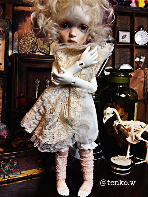 中野ブロードウェイでミニョネットをお迎えした時 お店の方が、おまけに付けてくださった アンティークレースなの♪ 私、気に入っちゃった。 お洋服、作ってくれるまで、これ絶対、放さない!!」 pupu (* ´>艸<)・:∴ そうなの、これで充分、ワンピに 見えるし、この困った顔と ドロワーズとレースのレッグウォーマー姿が かわいいから、ちょっとジラしてみる。。。 マゾか。。。(笑) 東京は、あの蒸し風呂のような 35度以上は、昨日で一段落(^▽^) ホッ 昨日の夜は久々にエアコンなしで 寝たよぉ。 窓を開けて寝たら、ちょっと寒くて 今日は、鼻がズビズビ(´ii` ; )ズル… まだ西の方は、今日も暑いらしいねぇ。 しかし、ほんとに、一昨日までがすんごい暑いから ひどく涼しく感じられて いいんだけど、ちょっと淋しい(;´▽`A`` だけど、まあ、これくらいの夏だったら ほんと、夏を感じつつ、 過ごしやすくて、ナイスだわぁ〜! と、いいながら、これからアイスを食べまする!! |