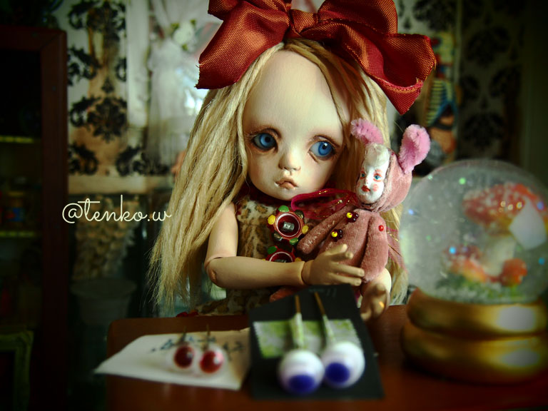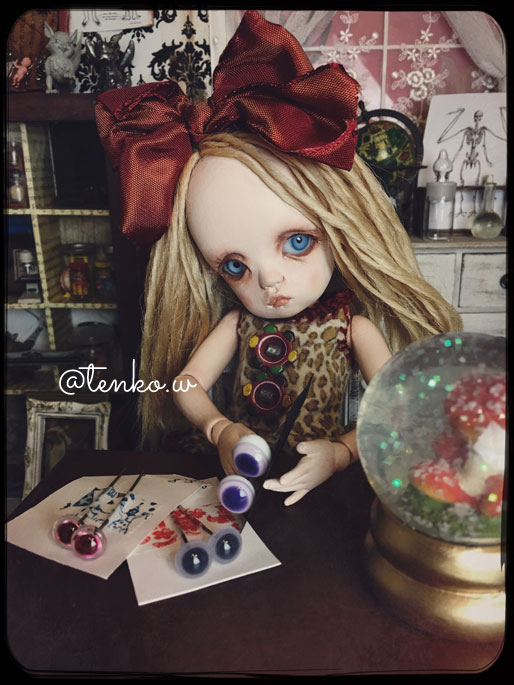 無事終了そして、Ranabellも新しいオーナー様の 所へ、無事到着しました。 今回は、また初めてのご縁で、嬉しい限りです。 熊本への募金もできました! 応援、ウオチしてくださった皆様 ご入札くださった皆様 本当にありがとうございます!! また今回、久々に日にちをまたいでの オークションで、本当にお疲れさまでした♪ また次の子を生み出すべく、鋭気を養おう!! で、マキリと遊ぶ。 マキリの今日のオヤツは”ラズベリー蝉の羽根添え” マキリ「蝉の羽根が去年のモノで、 美味しくないわ! ヽ(`ε´#)ノブーブーブー」 と、ちょっと不機嫌だったりするけど 少女の心はコロコロ変わる。 マキリ「私、こんなアイだったら、 どんなかしら?」 と、見ている棒付きアイ。 この前、ファンタニマへ行った時 お安くかわいい、この棒付きアイ。 当分、このアイを使う子なんて作るつもりはないのに これだけでもかわいいのでゲットしてきたものです。 マキリ、のコレクションになりそう.: *:( *´艸`).:゚+ そして、マキリは待っています。 マキリ「そりゃまあ。この、てんこが作った子が 全然、気に入らないって わけじゃないのよ。。。 わけじゃないけど。。。」 そうなんです。 マキリにせがまれて、オーダーをお願いしてる クマさん。 ちょっと作家さんのご都合で遅くなるみたい。 なので、もうちょっと待っててねん。 (と、ここまでの画像はiPhone、ここからの2枚はミラーレス一眼) マキリ「それじゃあ、仕方ないもんね。 これで我慢してる。」 我慢って( ̄▽ ̄;) ま、遊んでくれてるんだからいいとしよう。 iPhoneの画像もいいけど、 やっぱり、一眼の方が深みがある。。ような。。気が。 いや、気がするだけかしらね(笑) PR