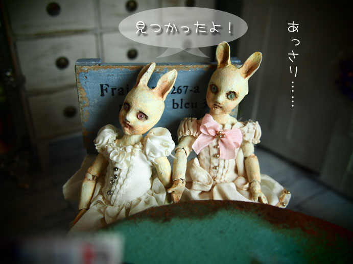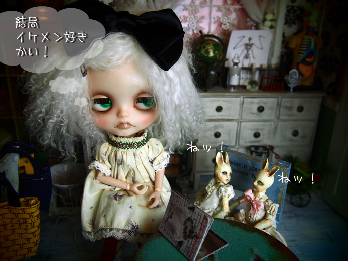 風てんこさん?かな?.: *:( *´艸`).:゚+ やっぱりね、ウサギたちもね、 好きみたいだわ。 イケメンが。 どうせ、一緒に不思議の国へ行くならば イケメンと一緒がいいらしい(笑) (〃∇〃) てれっ☆ 新しい子じゃなくて、 2人はおはぎ谷でアリスを見つけたの。 新しい子じゃなくて、期待ハズレで ごめんちゃ♪