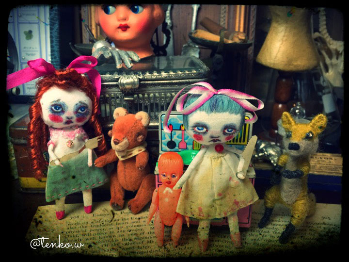 やっぱり、作る人、描く人に 似てくるっていうのは あるのかね(;´▽`A`` 自分では全然、そうは思ってなくても そうなっちゃう。。。。 アルアルなのかねぇ(笑) この子たちはまだ試作品なので おはぎ谷の子になりまする。 この子たちを基本に いろんな子を展開できるようになると いいなぁって思ってるところん♪ 普通のお人形よりも扱いが雑でも大丈夫だから ちょいとしたお話にはもってこいの子たち。 これからもダークな童話、物語ってくれそう.: *:( *´艸`).:゚+ |