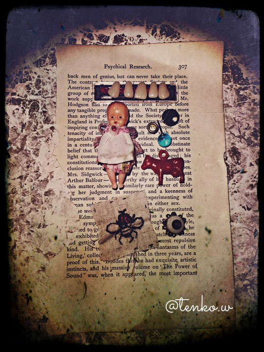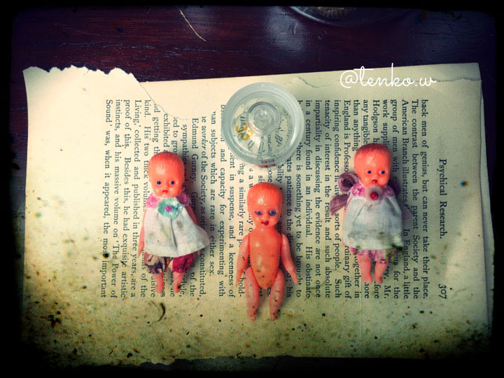 しかも、昼間って珍しいかも。 最近の台風は夜中にって事が多くてね。 なので、ベランダの物とかは、 状況に応じて、片付ける事にしてたけど 今回は「来る来る」と言われて ちゃんと来た。 なので、久々、昼間台風。 ちょっとビビりながら おうちでチクチク。 何をチクチクしてたかというと このプラスチック製のドール。 アクセにしたり、おまけにしたり ちょいとしたディスに使ったりと 重宝してるんですが、 裸ん坊。 この前から小さいドールの脱げない洋服作ったりしてて ふと、自分でもこの子たちに(この子たちに服を着せて たりする方は他にもいらっしゃる)作ってやろうと 思い立つ。 なんか、勢いがついて、数体に着せてみる。 余談だけど、たまに、真ん中の子みたいに ペイントがザツザツな子が居て( ̄▽ ̄;) これはこれで、ちょっとホラーでかわいかったりするので 自分の子として使ったりするんだけど で、色んなモノと並べたりして 遊んでたら 突然、次のブライスのコンセプトに繋がった。 次回はディスボックス付きでいくことは 決めてたんだけど、後の事は漠然としてて。。。。 でも、今日、決まったぜい。 なんか、ふと、違う事をしてて 違う事に結びつくって事 楽しいねぇ〜! だから、なんでも無駄な事って ないのよね(*^-^)うん! そして、明日は「Face Painted Doll」の ショップです♪ よろしくお願いいたします。 「みゆ猫屋商店」 *******拍手コメへのお返事******* 小*****淳******さん こちらでも、シズミへのエール m(*>▽<*)m アリガトッ シズミ、ちゃんとパンケーキ 焼けるかしらねぇ。。。(^-^; PR