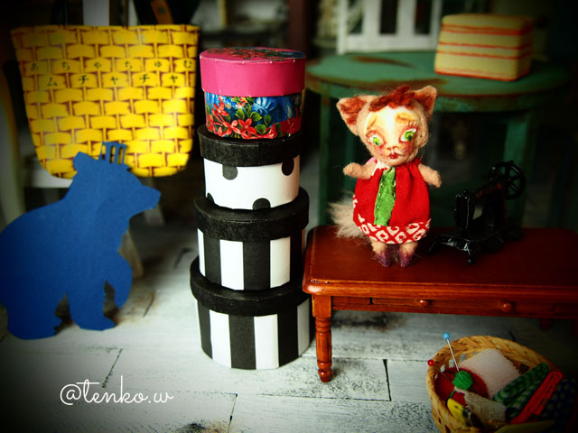 そして、ブルブル…{{{{(;>_<)}}}}…サムイ…よぉ〜。 すっかり夏が終わってしまった感じだけど (いや、夏は終わってるだろ、てんこさん<(;~▽~) え? ( ゜д゜)そなの?) 来週にはまた28度くらいには なりそな? ほんでもって、ブラカスのディスボックスなど作ってて ハットボックスもあるといいなぁ。 と。 で、ドール用のハットボックスとかさ ヤフオクで見たりとか、 ミニチュアだと、見ると かなり良いお値段なのねぇ(;´▽`A`` それならば、作るしかない。って 箱ってさ、けっこう大変じゃん? 円柱なんて大変なんじゃないかしら??? って、思ってたんだけど 意外に、B型のいい加減な作りだと(笑) 四角形の箱より、簡単だったかもぉ.: *:( *´艸`).:゚+ 一番上のピンクのは、試作なので ちょっとブサイクだけど、 せっかく作ったからノセノセ。 ちゃんと箱になってますわよん。 なんか、箱って作ると達成感 ハンパないね(笑) そして、てんこ。 次は、ブライスOF、ヤフオク出品計画ちう。 布裁断しております。 PR