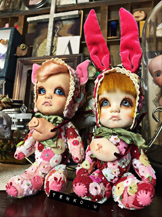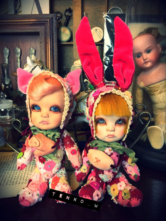また素晴らしい新しいご縁に恵まれて ジゼル。さきほど旅立っていきました。 ジゼルは今年最後のテンカスになりますが いつものように、応援ウオチご入札 ほんとにありがとうございました。 来年もまた「てんこワールド」全開で テンカスを生み出していきたいと思っておりますので またよろしくでっす。 ありがとうございました。 で、で、で、 うちのJコショネは、実は jちゃんの大好きなヒトに めちゃくちゃ似ていて 「J」の文字が「コショネ」の前に 付いたのだ.: *:( *´艸`).:゚+ だから、逢うたびにいつも 「かわいいね、かわいいね」と ラブコールを貰っておったのです。 ほんでもって、このコショネを見る前に 同じタイプの子でウサギさんを見ていた 私でしたが、ちょいと迷っているうちに その時はご縁がなくて その後、コショネと逢って、その時は 迷わずうちに来てもらったわけなのです。 ご縁って逃すとほんと二度とないからね。 私ってウサギ好きでしょ?.:゚+(u_u*).:ポッ+ でね、jちゃんが、ちょいとふいに 題府さんにお問い合わせをしたんですよ。 そしたら、まだあの時のコショネと姉妹の ウサギさんは題府さんのお手元に!!! ってことは?! そうなんです。 jちゃんがウサギさんをお迎えしちゃった.+:。ヽ(*'0'*)ツ ワオォ!! ってことは?! え? (*'д'*) 今、我家にはこの二人がいる。 ってことは?! (//艸//) …ムフ♪ jちゃんちにJ.コショネがお嫁に行って 我家にウサギさんが!!! このあと、コショネはjちゃんちに旅立つのですが しばらく姉妹の時間を楽しんでもらおうということで このツーショットが実現! 嗚呼、なんてかわいいの。 このまま、二人とも。。。。 ブン( ;`-ω- ≡ -ω-´;)ブン そんな事はでけんわ。 でもでも、そんな不埒な考えが 脳裏をよぎるほど このツーショットかわいすぎ(≧∀≦) 二人で悪巧みしてるみたいなお顔(笑) 今夜は二人で一緒のベッドに眠るそうです! ハフーン! また、なんか運命を感じちゃった。 きっとね、逢うたびに ラブコールを送ってくれたjちゃんに J.コショネはjちゃんちに行く事を決めて それで、ウサギさんを呼んだんだと 思う。 代わりに「てんこんちの子になりなさい!」って! そんな運命の二人のツーショット。 しばらく楽しみます。 あ、ウサギさんは 「Joli lapin*ジョリ・ラパン」 って名前にしよかな。 コショネが仏語で「子豚」の意味だから ウサギさんも「かわいい子うさぎ」ってことで 「ジョリラパン」 PR