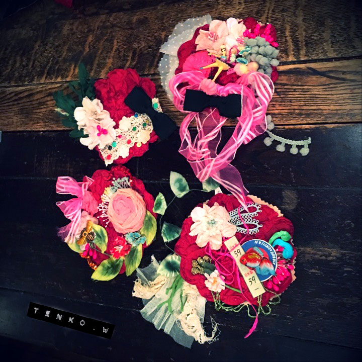 今年もあとちょっとになってしまいましたねぇ(  ̄^ ̄) トオイメ… そんな師走の始めの日は なかなか忙しい充実した日だったわん。 まずは、月イチの金魚さんの布花WSで下北へ。 今日は、この前、最後に習った小さいお花の復習も兼ねて? コラージュっぽくペシャージュします。 ペシャージュってのは、ぺしゃんこなコサージュとコラージュの造語だそうで 布花というより工作の世界ってかね(*^o^*) 台の赤いお花に色々とブツを盛っていきまする。 製作途中とケーキ。 この日のケーキはキャラメルアップルケーキ♪ なんかこう並べてると頭の中が まとまらなくて、 グチャグチゃ(;´▽`A`` でもなんとか仕上げて、みなさんの作品と パチリ。 言わなくてもわかるだろうけど(笑) 私のは右下の金魚がいるお花。 また、なんだか大輪だし(;´▽`A`` でもって、その後はコテを使わず手軽に作れる スズランを教えていただく。 (/▽\) イヤン こんな可憐なお花も作れるなんて嬉しい♪ で、また私のは右下。 なんか、他の方のが可憐なのに 私のスズランってば、なんかクール?(?ω?) ま、いっか。 おコメちゃんが持ってもこんなに大きい! 彼女の顔よりデカイがなpupu (* ´>艸<)・:∴ 自分でパーツを用意してもよかったんだけど やっぱり、こういう機会だもん、 金魚さんのチョイスパーツを使った方が いいかなっと思って(〃∇〃) てれっ☆ ま、またグロくしたければ、 いくらでも、付け足せるしね。ヾ(^o^) オイオイ なんとなく、お正月っぽい感じかしらね? ブローチというよりも お部屋の飾りくらいの大きさだけど シンプルなお洋服なら これくらい付けても大丈夫?ってな。o(*≧◇≦)o″ダメッ!!ダメ←っとどこからか声が(;´▽`A`` ブローチもいいけど、ネックレス風に 仕上げてもかわいいかも。 と、またまた、大満足な布花教室を 後にして、次は浅草。 あさくさ劇亭にて「だるま食堂」という女性3人の 10日間でコント60連発の第七夜を観に行く。 コントで笑った後は 友人と「こーちゃん」という居酒屋で 飲み会をして、あーでもないこーでもないと 一杯お話を! すんごい目一杯ギュっと詰まった1日でした。 そして、布花のお教室はまた来年1月。 次もめちゃくちゃ楽しみだわん.:゚+(u_u*).:ポッ+ PR