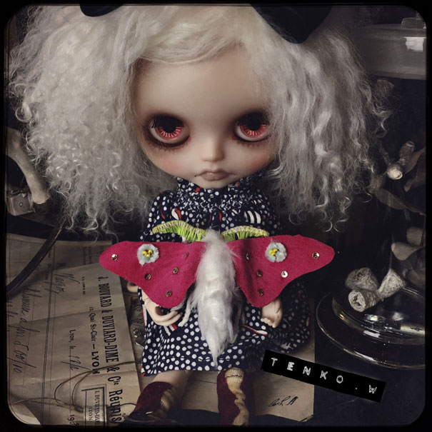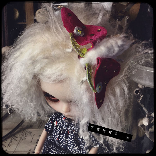 やっぱりおコメちゃんは 蝶も好きだけど 蛾も大好きなんだってさ.: *:( *´艸`).:゚+ おコメちゃんが欲しかったのは どうやら、かわいい系の蛾じゃなくて ちょっとダークな蛾だったみたいで<(;~▽~) 作り直しだわ。 でも、アンルちゃんに 「十分」と言って貰えて 嬉しいわぁ〜! 人間用にブローチ作るつもり! がんばるわぁ! |