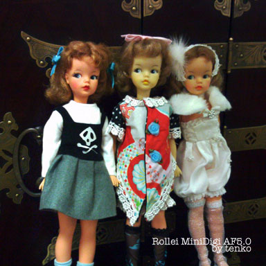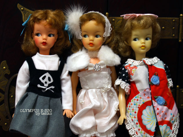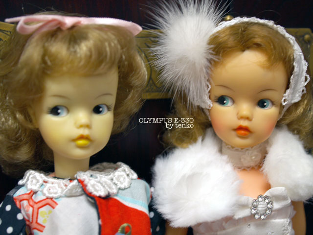 そのお宅訪問に。 ずっとずっと行く行くと言い乍ら、なかなか機会がなかったのだけど、 自分でリフォームをちょっとしたというので、それも見学がてら、 それから、3匹のお猫たちにも逢いがてら行ってきました。 で、初めてモノレールに乗りましたのよ♪ モノレールのホームは高い位置にあるので、高所恐怖症の私は、下半身がムズムズ(笑) AVOXで撮ったら、向かい側のモノレール、「疾走するモノレール」に写ってた。 モノレールは高い所を走ってるので、窓の外の景色がゆっくり流れて、ほんとにのどかーな感じ。 そんでもって、友達は私とは違って「人形モノ」ではない。 で、この前このブログを読んで「タミーちゃん居るけど、いる?」っていう 一言を忘れないでいてくれたばかりか、スカーレットちゃんまで連れて帰っていいという。 ヾ(@⌒▽⌒@)ノ デヘヘヘヘ。 連れ帰ってきました。 しかも、タミーちゃん、メイドインジャパ〜ン! すでに我が家にいるタミーちゃんよりは白蝋化してないのね。 さっそく、今日、タミーちゃんとスカーレットちゃん、お風呂に入りまして、シャンプーそして お着替え。 大切にするからねぇ!!! ありがとぉぉ。 真ん中のタミーちゃんが連れ帰ってきた子 メイドインジャパンの二人でパチリ スカちゃんとタミーちゃん スカちゃんが友達の子で、タミーちゃんはお姉様のお子であったそうな。 スカちゃんハウスで。 お猫は3匹もいるのに、2匹はどこかへ雲隠れしちゃって、長毛黒のチャ〜ちゃんにしか逢えませんでした。。。(⌒o⌒;A PR