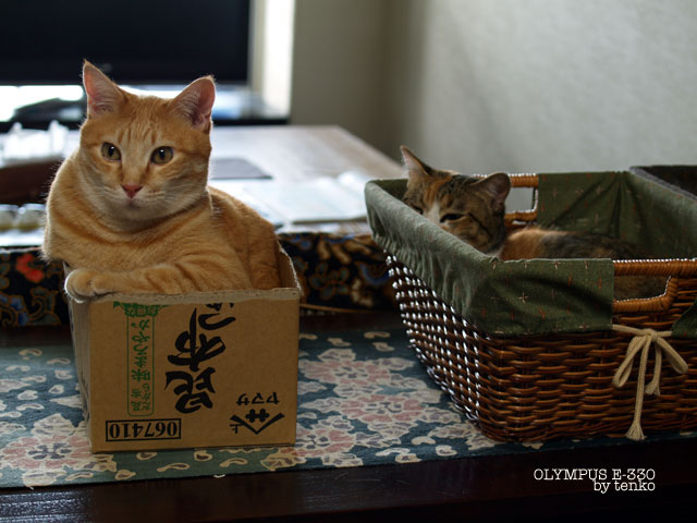 アハ。みゆ坊ってば、どんな小さい箱にも チャレンジする!! それが、彼のモットーらしいの( ̄▽ ̄;) プ、プライド。。。。。(* ̄m ̄)プ そうなの、あじゅとオソロの籠があるのにねぇ〜。。。 スイミング。 ほんとに、ひっさしぶりだったから、 今日は、筋肉痛で。。。 なんだか、ダルイ。。。。なので今日はダラダラ。 ダメジャンねぇ〜。。<(;~▽~) あ、そうだ、今日は、七夕だった。 小さい紙切れでもぶら下げとくか。。。(笑) 私の「祈願! 5キロ減」と一緒に♪