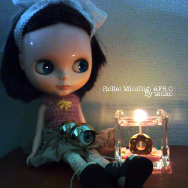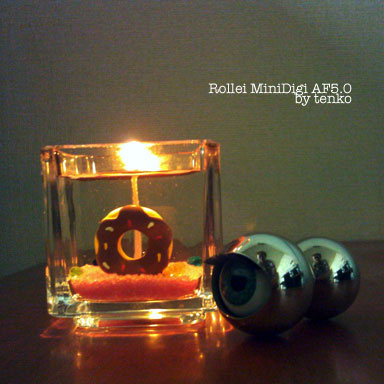 ダリアさんと仲良しこよしに!!! ウフ この目玉、ぎゃーじんの女の子のフォト はさんでたよ♪ キャンドルの明かりでダリアさん おでこピッカリンコでよろしおすな~
