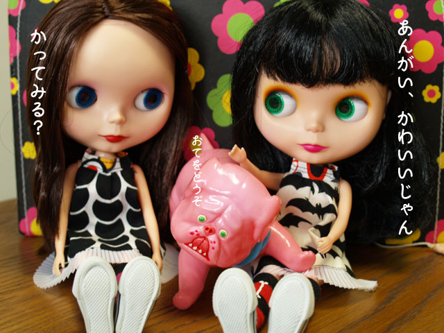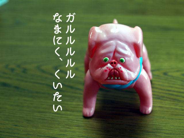 以前、どっかのショップでチラ見して、 その後、上野のヤマシロヤで黒バージョんを見て、 で、このピンクちゃんを見て、もう即ポチ♪ なのに、ずっと音沙汰なくて、半ば諦めてただけに 嬉しいのん♪ そうそう、二人の前には、闘犬の彼も かたなし。 あ、ブルちゃんといよりは、「土佐犬」らしいよ(;´▽`A``