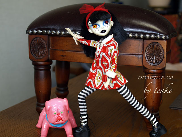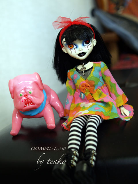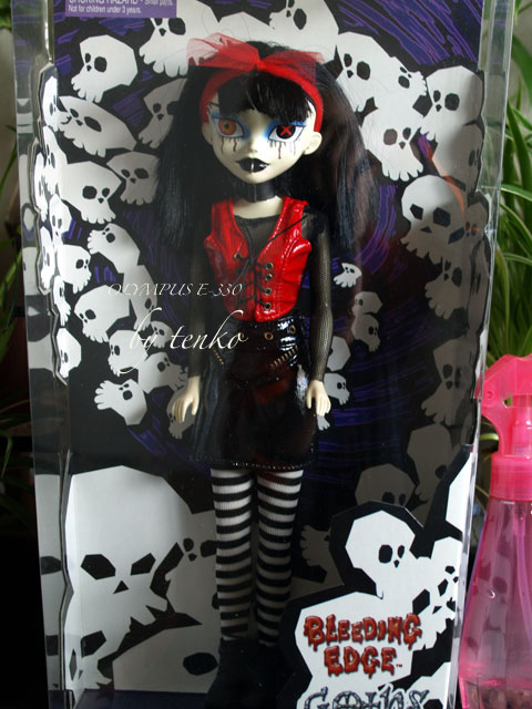 海外のショップを覗いてたりしてた。 その時、気になるなぁ〜って思ってたけど、送料の事とか考えてスルーしてたDollが居る。 ふと、ヤフオクを覗いてたら、「展示品〜即決」で出てるじゃない。 しかも、2000円しないよぉ〜!!! これは、何かのご縁という事でお迎えしました。 BLEEDING EDGE GOTHSシリーズ1『MALICE』 LDDが苦手な方はダメかも知れないので、以下たたみます。 サイズは30センチくらいで、OFは、ブライスのものは、胸が大き過ぎてダボっとした物以外は、後ろが閉まらない。 で、LDDとかプチAIサイズとか、バビサイズのお洋服が大丈夫♪ なんか、めたんこハマった。 描き目がかわいさの一つなんだけど、これで、スリープアイだったりなんかしたら、 もう満足度最高潮だったのになぁ〜。。。。 なんて。。。贅沢です。。。この値段で。。。(⌒o⌒;A 正価はLDDと同じくらいだったと思うけどなぁ???? で、名前は「ブリンダ」と決めました。 追記 ヽ(`⌒´メ)ノ さっき、録画しておいた「嫌われ松子の一生」をみていたら、 途中、「福田総理辞任」の特別番組になっていた。。。 (◎`ε´◎)ブゥーー! 福田の野郎ぉ〜〜〜〜!!! 途中で投げ出すなよぉ〜。。。と、今更ながら腹が立った!!! PR