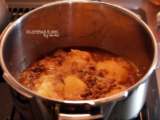 さっそく、まずは「肉じゃが」って思ってたので 作ってみた。 jinちゃんから、「調理時間はちゃんと測らないと、ジャガイモ溶けるよ!」 と、言ってもらってたのに。。。 マニュアルをちゃんと読まない人なのだ。。。私。 まず、調理時間の測定はピンが上がってきてから測るんだったのね。。 (⌒o⌒;A 加熱の最初から測ってた。。 で、ピンが上がってきたら、火を弱火にするんだったのね。 (⌒o⌒;A ずっと、強火にしてたよ。。 だから、フィスラーは蒸気が上がらんって聞いてたのに 派手に上がるなぁ〜。。。って思ってはいたのだ。。。 (⌒o⌒;A で、お鍋を開けてみたら。。。 あれま。。。 ジャガイモ、溶けかけてる。。。 かろうじて、形のこってるけどさぁ〜。。。 こりゃ、ずっと強火。。。が原因だね。。。アハ。 で、附属のレシピ本の味付けに忠実に今回はやってみたんだけど。 やっぱ、味薄い。。 なので、この後、ちょっと、お味調整。 なので、お汁が一杯だ。。。( ̄▽ ̄;) で、盛りつけたし。。 うちは、肉じゃがに白滝入れます。 美味いかどうか、本日、これをつまみにします。。。。 あ、今日は、なんと、雪、雪だったお! PR |