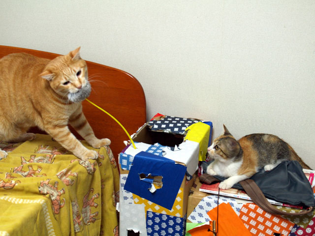 しかし、ダダダダ〜〜〜〜とみゆがあじゅを追いかけて玄関の方へ走っていったかと思うと、今度はあじゅがみゆを追いかけて寝室の方へダダダダ〜〜〜〜と走っていく。。。 二人で猫キスをしてたかと思うと、みゆがあじゅに猫パンチをくらわせている。 今、あじゅのケージは寝る時以外は開けたままにしてあるので、みゆがあじゅのケージの中でトイレ点検。そのまま、あじゅの小さいトイレでみゆが、ジョ〜〜〜とお◯っこ(;´▽`A`` かと思うと、あじゅがみゆのデカイトイレの中に入って、匂いをかいでいる。 ってな具合で、仲良しなのか、悪いのかよくわかんないけど、ほんとに嫌なら、一緒にいたりしないだろうから、こうやって少しずつ気にならない存在になっていくんだろうと思って、ニマニマしている。 だって、パソで仕事やってると、「ハー」とか「ウー」とかドドドドド〜〜〜とかにぎやかで、それをついつい見に行って、楽しい風景に出会ったり、ハラハラしたり、「シーン」としてても、気になったり、なかなかいろんな事がはかどりませんて。。。(⌒o⌒;A PR