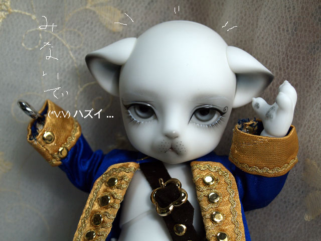 そうなるとは思ってたけど、 しかし、これほどまでに、オスカル風味になるとは かなりびっくり(笑) Dukeの白肌は、カワウソよりも もっと透明感がある感じで、綺麗。 カワラは弟なので、外で一杯遊んでちょびっと日焼けしてる? みたいな。。。 カワラ。一昨日テンションを強くしたら、 自立し難くなった。。。ので また緩めたら、立つようになったんだよ(;´▽`A`` 首はカクカクするけど。。。付け耳とか アイをグラスアイにしたら、 頭が重いらしく、自立しにくくなったと??? >きゃ~~~~~オスカル風味かなりツボ! >オスカル風味の時は >なんだか目がキラキラしてる気がする~~ >ちゃんとバラフレームだし、う~~ん素敵♪ > >でもって、やっぱ白肌同士だとまた印象違うね~! >すごく兄弟っぽさが増す! > >兄ちゃんの影に隠れながらも >すごい睨んでるカワラが可愛い~ >やっぱメイク変えて正解だったよ!