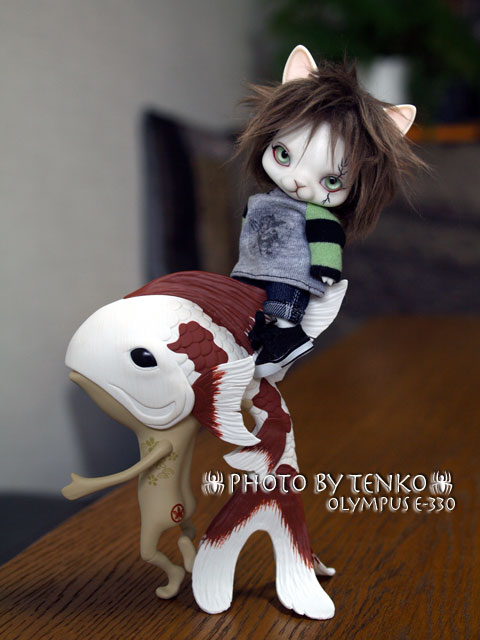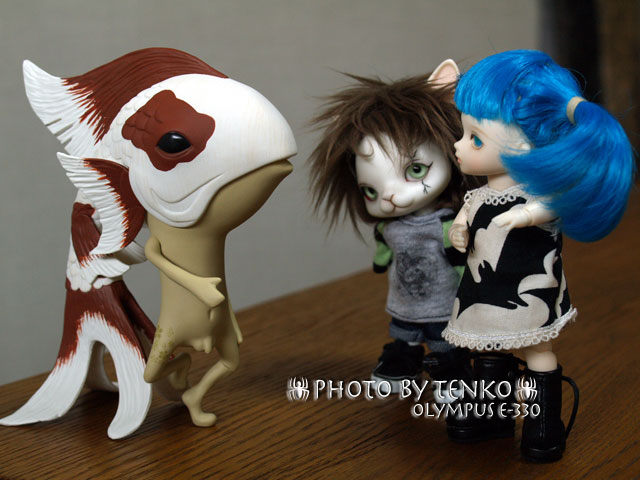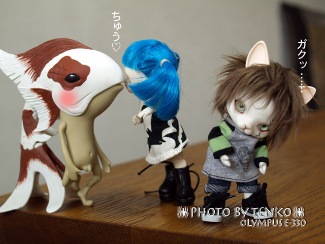 引き篭もり生活してたから初めてみた!!! おもしろい~~~~ この魚部分(?)外せるの?? ちょっと~どうなってるのかメッチャ気になるぅぅうう(≧∀≦*) そんで足のポーズ!!!なんてきゃわいいの~~ いいねいいね~~ 個性派揃いのてんこちゃん宅でも、かな~りいいキャラで光輝く予感~^^ Re:ぬお~