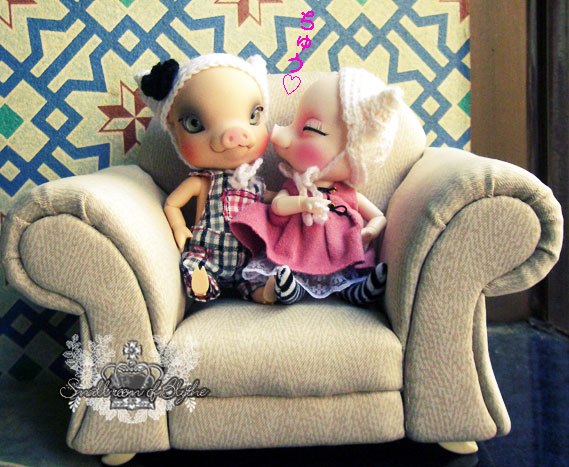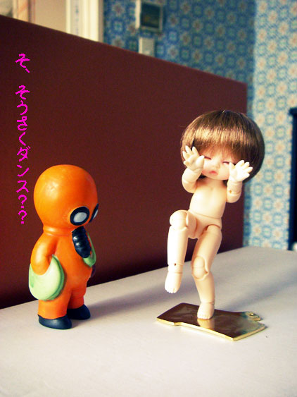 jinちゃんちのお嬢様がうちへ到着されてたので、お届けもあったりで、 急遽(一応、急遽かな?)決定。 それとRJちゃんちの新人さんにまだ逢ってない私のために、チビチビ大会延長戦っつーことでした。 あ、それと、独り身のラトのために、RJちゃんちのウィンクちゃんが来てくれるっつーこともあったんだヾ(@゜▽゜@)ノ jinちゃんちのベネデッタ嬢。これからどんな風に育っていくのか楽しみだわん♡ そして、ラト。RJちゃんが今回、比較的大荷物にならなかったので、自作ソファーを持参してくれたのよん(嗚呼、素敵。私も早く作りたぁ〜い)。 ラトすっかり舞い上がっておりまする。 で、チビチビ大会は、このようなメンツが集まりまして(全員、写り切ってないけど<(;~▽~)) ベビフェたちの森(林?)もできたり……。 それから、jinちゃんが偶然、逆行なのでフラッシュをたいて、撮影したら、ものすごくおもしろいハメコミ画像みたいになって、それをマネッこ。 うちのカメラではそうでもない。。。けどちょいとそんな感じ?? ほんでもって、私的には今回は、RJちゃんちの新人さんたちに逢うのを めたんこ楽しみにしてたのさ! それは、「からくりを暴いてやる!!!」な勢いだったから(笑) まずは、画像をご覧アレ! こ、こいつら、球体なのに、何やってんだぁ?????!Σ(→o←;;; まあ、3、4枚目の写真はわかるとしても。 足にマグネットが入ってるので、プレートの上でバランスを保っていろんなことができる。 が、しかし、1、2枚目のアクロバットしてる二人!! なにものだ??? これは、画像を見た時、何かカラクリがあるに違いないと思っておったのだが!!! が、が、が、しかし、これは正真正銘バランスをとって、自立してるんだよぉ〜!! 凄過ぎる!Σ( ̄□ ̄|||) 生で見るまでは信じないと言ってたんだけど、生で見ても信じられない(笑) この二人に心を奪われてしまったアタクシでした。 因みに、この子たちは妖精国にpukipukiシリーズのダージリンちゃんの開眼と眠ちゃんの杏ちゃんと茜ちゃん。。。。 ぬぅ。。。。ほんとに、素晴らしい造形!!! まだなんだか、幻を見たような気分だ。。。。 と、また今回もアッという間に、お別れの時間。 途中、カメラのバッテリーがピィ〜ンチ。 でも、どうにか、全部撮れてた。。。良かったわんヾ(@゜▽゜@)ノ PR