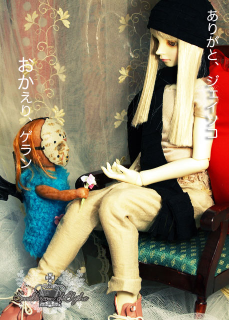 「うちにもボークスの看板息子、クリスくらい居てもいいかな」 みたいなさ、なんか、不純な動機(ってほどでもないけど) 今から思えば、惚れ抜いてっていう感じではなかったような気がするの。 でもね、改めて、奥田氏してる最中、「嗚呼、やっぱりクリスうちに居て欲しい!!」ってだんだん思えてきてね。 今では、「ゲラン!! うちに居て頂戴!」 みたいな感じで変化したのよ。 離れてみてわかるその存在。。。。みたいな。。。(;´▽`A`` そして、LDDっこたちも(〃⌒ー⌒〃)∫゛ なんか、お笑いもできるLDDみたいな3人。 いいでしょぉ〜〜〜〜!!! ̄ー ̄)ノ)))))))) お面を取った、画像はまた今度アップしちゃうわん♪