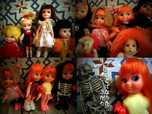 朝からこんなに雨が降ってるのは……。 カラカンデートの時は、台風が接近していた日でさえ、曇りベースだったのに、 何故か今日は朝から、雨だった。 で、メールを見ると、RJちゃんから 「風邪ひいて欠席」のメール。。。<(>o<)> そうかぁ〜、今日の雨は「林檎飴」じゃない「林檎アメ」だったのかぁ〜〜〜〜(笑) てなことで、jinちゃんと二人でカラカンデート。 延期も考えたけど、二人とも渡すブツがあったりしたので、 雨天決行!!! この丸井の真ん前にあるカラカンでいつもデート。 今日の私の装いはこんなん♪ ほんでもって、今日のメインはベイで落札したLMNNちゃんをjinちゃんに お届け。 LMNN=リトルミスノーネーム だけど、あんまりリトルじゃない(笑) ヤフだと1万越えは当たり前なLMNNも、ベイだとお買いドクゥ。 さっそく、お洋服を着せて、パチリ。 そして、両家のチビチビたち。 右下の二人はjinちゃんちからお嫁に♪ 今日のブライスたち 毎回いろんな子たちが集まるけど、やぱりブライスははずせない♪ くまさんも一緒に。 で、こんなかわいいイラストが側面にあるjinちゃんが新しくゲットした不動産。 このハウス、小さい子たちのキャリングケースにも活用できる優れもの♪ 全貌がありませぬが(⌒o⌒;A。。。さっそくpukiのシラコ&タラコが住みつきたそうに、くつろいでおります(笑) と、しらたらが寛いでいるその時!!! 「ちょっと、待ったぁ〜〜〜!!!!!」 突然、声が。そして、現れいでたる謎の3人組 「このハウス、わしらがもろた!」 と珍入者。。。 これ、誰だと思う?? そうです。レイラちゃんところから来た、オキュパイトのガスマスクくんたち(笑) pukiのために作ったウィッグをjinちゃんのアイディアで被せたら、 これがなんともう、ツボ!!!! しらたらも、アクロバットしてあきれかえるばかり(⌒o⌒;A そして、もう一人。今日は林檎ちゃんが欠席で紅黒丸の二人居ないからか ちょっとアンニュイな珠羅。。。 なんだかんだとまたアッという間に時は過ぎ。 帰る頃には、「雨あがりてんこ」の面目躍如、雨はあがっておりました。 今日も楽しい1日をありがとう♪ あ、そうだ、忘れちゃいけないわん。 この日のもう一人の頂きブツ。 頭皮がないフルパンさんがjinちゃんちからお嫁に来てもらえることに。 とりあえず、取り外せる頭皮(スペスケ)を借りて、 ちょっとチークを足して、フルパンのOFを着て、記念写真。 あら、イヤーン、すんごいかわいいじゃないのぉ〜!!!! 名前、決めなくちゃぁ〜〜〜!!! PR
