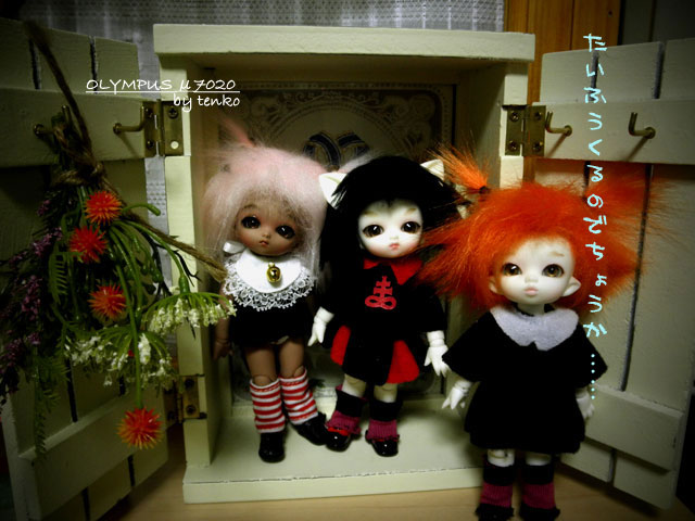 ジャンジャン雨が降って、風が吹いてさ。。。 小学校の頃、友だちの家が流されたりとか。。。 こっちの方もなんか、 すごいすごいと言ってたわりには そして上陸したんだよね? そのわりには、スカった。 今も風は強いけど、晴れてるよぉ〜!!! 稽古だよぉ〜。。。。(;´▽`A`` あ、この3人。 白い二人はベーシックで買ったから、1万円台なんだけど。。 焦げはフルセットしかなくて、ちょっとかわいくないお値段。 でも、手のパーツも4種類、顔のパーツが2種類。。 お洋服にウィッグと、ものすごく附属品があるので、 損した気分はない。。。んだけど。。。 確かに、この3人で、いい一眼が買えるよねぇ〜(笑) ほんでもって、miikoちゃんは、まだ迷ってるのね???? 一眼とマクロレンズ。買っちゃえぇ〜〜〜!!!!