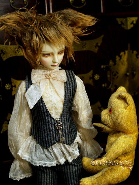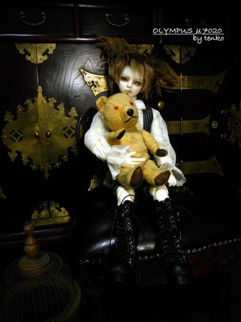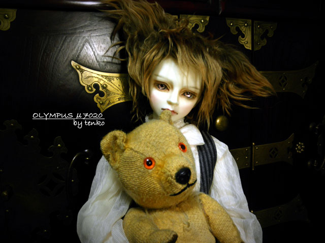 ほんとに、愛おしい。。。 不思議だよねぇ〜。 扱い難いって思ってた子たち(zitto兄弟もだけど) ちょっと弄ってあげるだけで、不可欠な子になっていくんだもねぇ〜!! ゲランは、狼耳(ボアウィッグね)すると 動物語が話せるし、聞こえるようになるらしい。。。 けど、くまさんも、長年生きてるので(そうそう、すっとぼけたお顔が チャームポイントなの)、人形語もかなりわかるらしいの♪ しかし、人間だけねぇ〜、人間の言葉しか しゃべれないの。。。クスン。 ワンコやお猫の言葉、想像してなんとなくわかるけど、 ほんとに、ペラペラとしゃべって見たいねぇ〜。。。 超能力者で動物の言葉がわかる。。とかってヒト いるじゃん? すんごい羨ましい。そりゃ、うちの子の事は だいたいわかるけど、でもちゃぁ〜んと一度でいいから 喋ってみたいね。 ゲラン。そうだね、うちの子でいることは ずっと彼にはわかっていたんだね。。。 「てんこはしょうがないなぁ〜」ってな事、思い乍ら(笑)