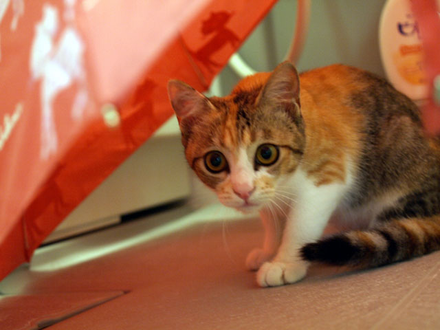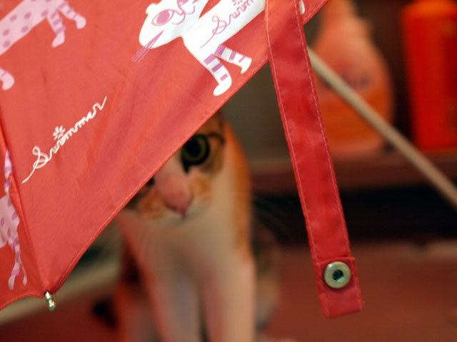 お風呂場に傘が広げてあるだけで、楽しい人が居る♪